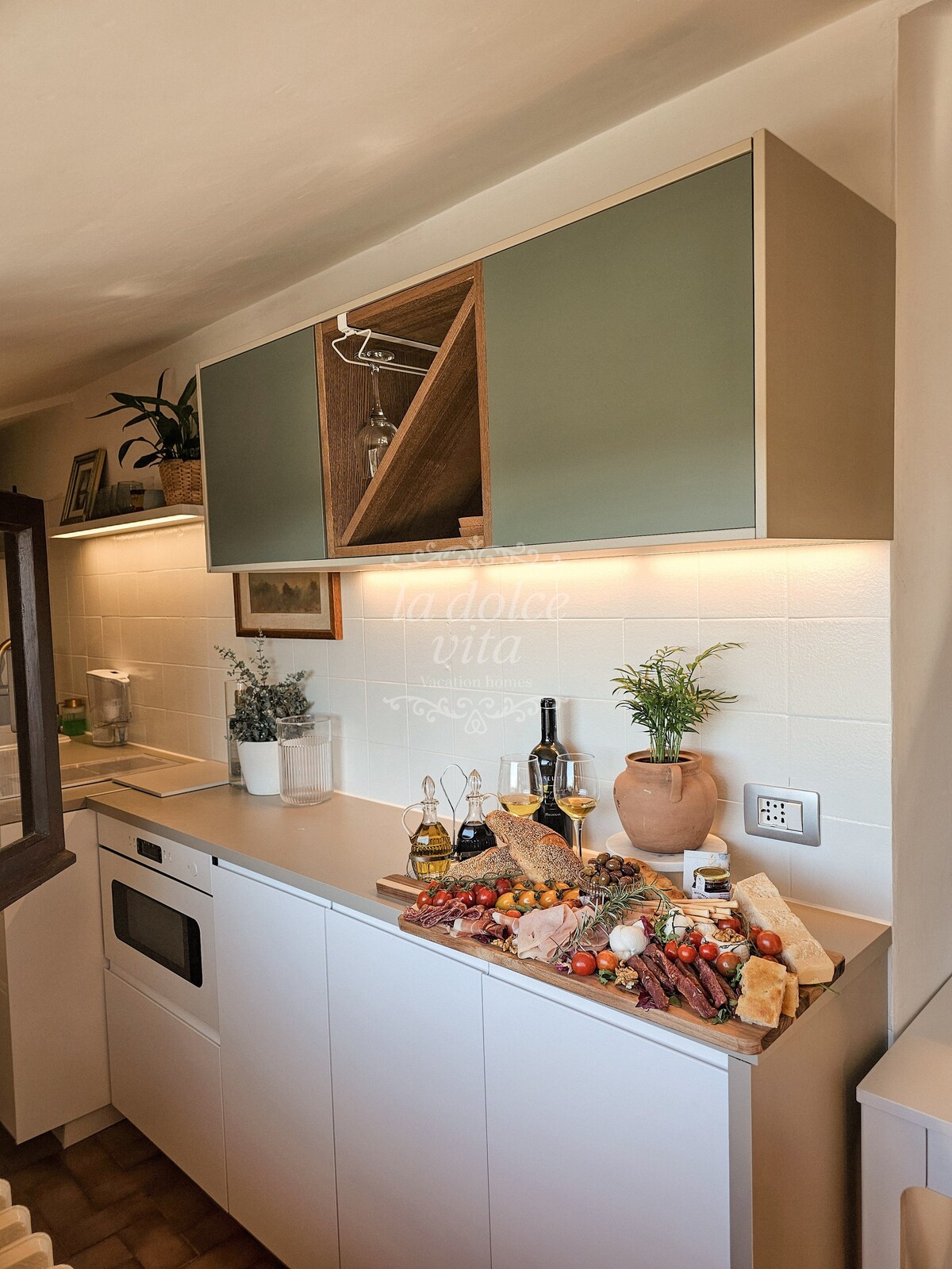 In the heart of the Valnerina, a new and bright villa welcomes you among olive trees and mountains, with an idyllic view and absolute silence. The interiors combine a living room and kitchen in a single elegant and super-equipped open space; a double bedroom, full bathroom and sofa bed make the space perfect for couples, families or a group of friends. Outside, an area with a small table and three seats awaits you for a sunset aperitif. 100% electric house with seasonal air conditioning.