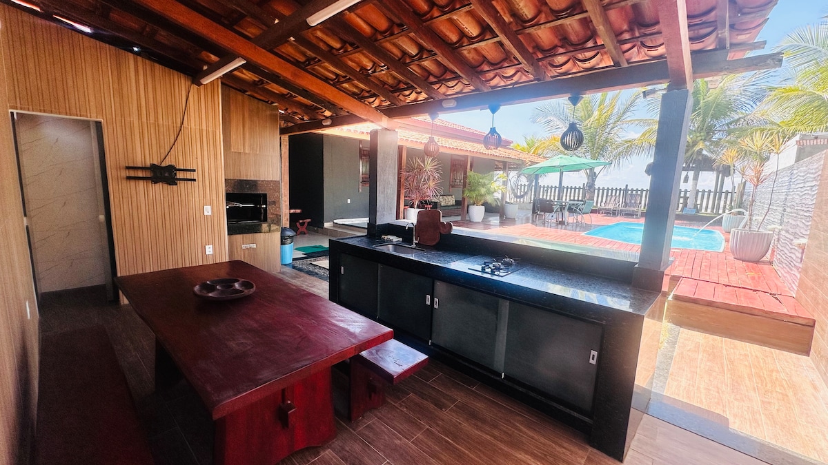 Cercada pela natureza exuberante da Ilha dos desejos em Ilhéus-ba, rio ao fundo e bela praia na frente. Ainda conta com: piscina, churrasqueira, area gourmet, forno, geladeiras, pia, internet, 5 suites com ar-condicionado, ampla cozinha completa, sala de tv, sala de jogos, bebedouros, total segurança e suporte do proprietário para garantir uma ótima estadia. Gerador de energia próprio para garantir maior comodidade e conforto.