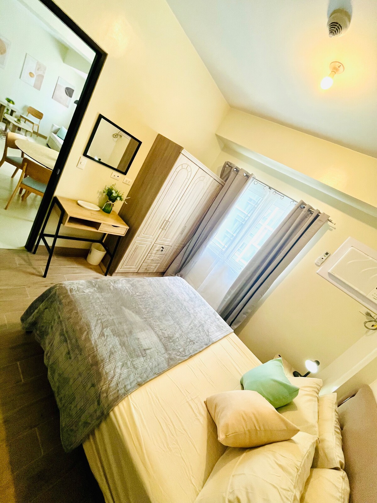 Welcome to your cozy studio in the heart of Bacolod! Thoughtfully prepared with all the essentials—comfortable bed, fresh linens, private bath, mini fridge, kettle, Wi-Fi, and AC. While we’re truly sorry there’s no kitchen or cooking available at this time, we invite you to explore the city's beloved cafés and restaurants nearby. We’re here to make your stay smooth, relaxing, and full of the local charm Bacolod is known for.