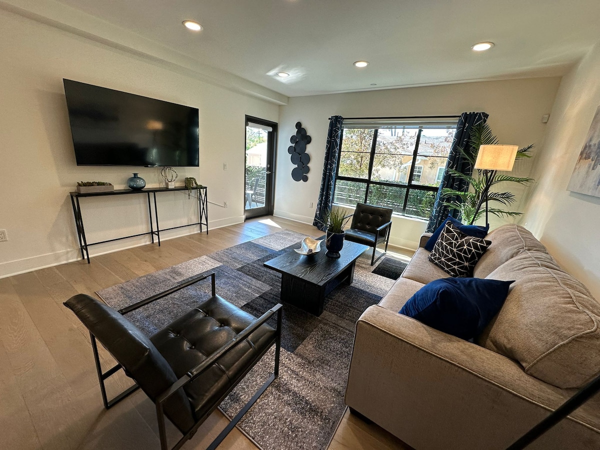 2 blocks from Downtown Culver City, this stylish, spacious, impeccably clean, and fully equipped space is designed from the ground up for the discerning traveler. Amenities include a high end mattress; blackout shades; quality linens and towels; fully equipped kitchen & bathroom; AppleTV, YouTube TV, Netflix, HBO; 400mb Wi-Fi, and work from home workstation with premium chair, and garage parking. The restaurants, theaters, & farmer's markets are a 5-minute walk away. The Metro Expo line and Trader Joe's are a 10-minute walk. HBO, Netflix, Amazon and Sony are a 10 to 15 minute walk. 1 Bedroom/1 Bathroom Low-Rise, Split-Level, Residential Condo - 1,005 Square Feet - Queen-size, Casper Mattress with Bedgear Topper - Six Firmness & Loft Pillow Options - Full Bathroom with Shower and Tub - Full Kitchen - Laundry Room - Private Outdoor Patio - Wood Floors Throughout - High-end, modern furnishings - 1 On-Site Garage Parking BUSINESS: - Dedicated Fiber Optic High-Speed Internet - Aeron Office Chair with Desk - Wireless Laser Printer - Multiple USB Charging Ports - Digital Safe - Chemex & Programmable Coffee Makers, and Complimentary Coffee and Teas ENTERTAINMENT: - SONY 65โ Smart TV LED 4K Ultra HD HDR - DirecTV & HBO - Netflix, Spotify, Pandora, iHeartRadio and More Applications - Yoga / Workout / Stretch Gear Including Yoga Mat, Blocks, Foam Roller, and SMR tools - 1 Block to Downtown Culver City Restaurants, Bars and Theaters Feel free to reach out with any questions, or for recommendations for places to visit during your stay. The apartment is in a low-rise residential neighborhood one block from downtown Culver City. It's easy walking distance to the SONY lot, the Culver Studios, City Hall, and the Kirk Douglas Theater. - Culver City Bus Stop โ 1 Block - Two Metro Stations โ 20 Min Walk - 405 Freeway Exit โ Venice Blvd or Washington/Culver - 10 Freeway Exit โ Overland or Robertson - Los Angeles International Airport โ 6 Miles - Bob Hope Airport โ 31 Miles - John Wayne International Airport โ 46 Miles Walking distance to Sony Headquarters and Studios, Culver City Studios, Culver City Hall, Kirk Douglas Theater.