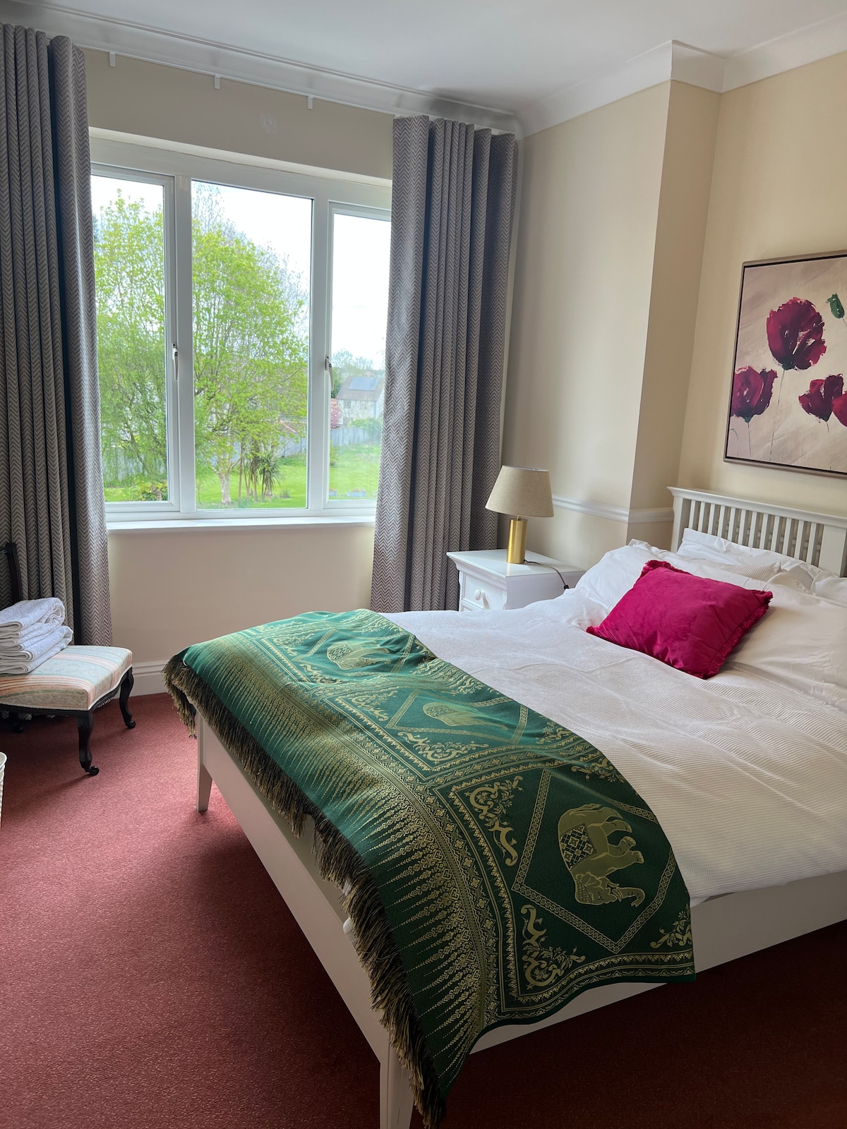 Bright, modern ground-level home in Castletroy with a luxurious super king bed overlooking a private garden. Enjoy a fully equipped kitchen with a spacious island, perfect for cooking and relaxing meals. Unwind in a spa-inspired bathroom with a deep soaking tub and natural bath products. Step outside to your private backyard with patio seating, outdoor dining, and a lush garden. Flooded with natural light, it’s ideal for a comfortable stay near shops, restaurants, and the university.