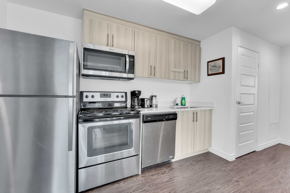 LARGE 20% DISCOUNT FOR MONTHLY STAYS Newly renovated ground level Studio apartment decorated with comfort and style in mind. The space includes a fully equipped kitchen and 3 piece bath. The apartment is located in a quiet neighbourhood close to St Jacobs farmers market, St Jacobs playhouse, two Universities, shopping, arenas, library and recreation centres. Within 8 kms of Centre in the Square. The host will be there to greet you and answer any questions you may have.