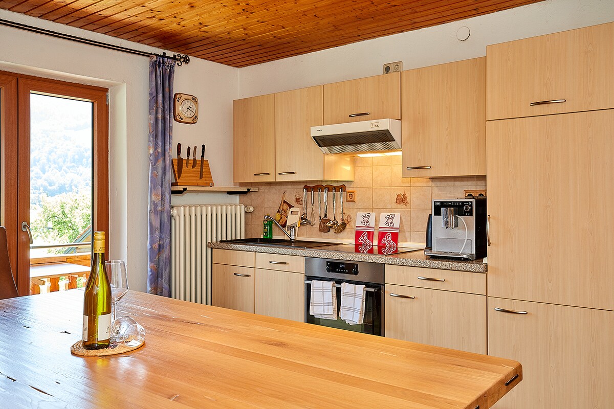 Step into the mountain view apartment and feel right at home in your little chalet and look forward to countless nature and sports adventures! Close to mountains and Lake Chiemsee. The Kampenwand cable car is a 5-minute walk and the mountaineering village of Sachrang is a few minutes by car! Relax and enjoy mountain views on your sun balcony. Snuggle into the cozy box-spring bed or relax in the sauna with a large relaxation room!