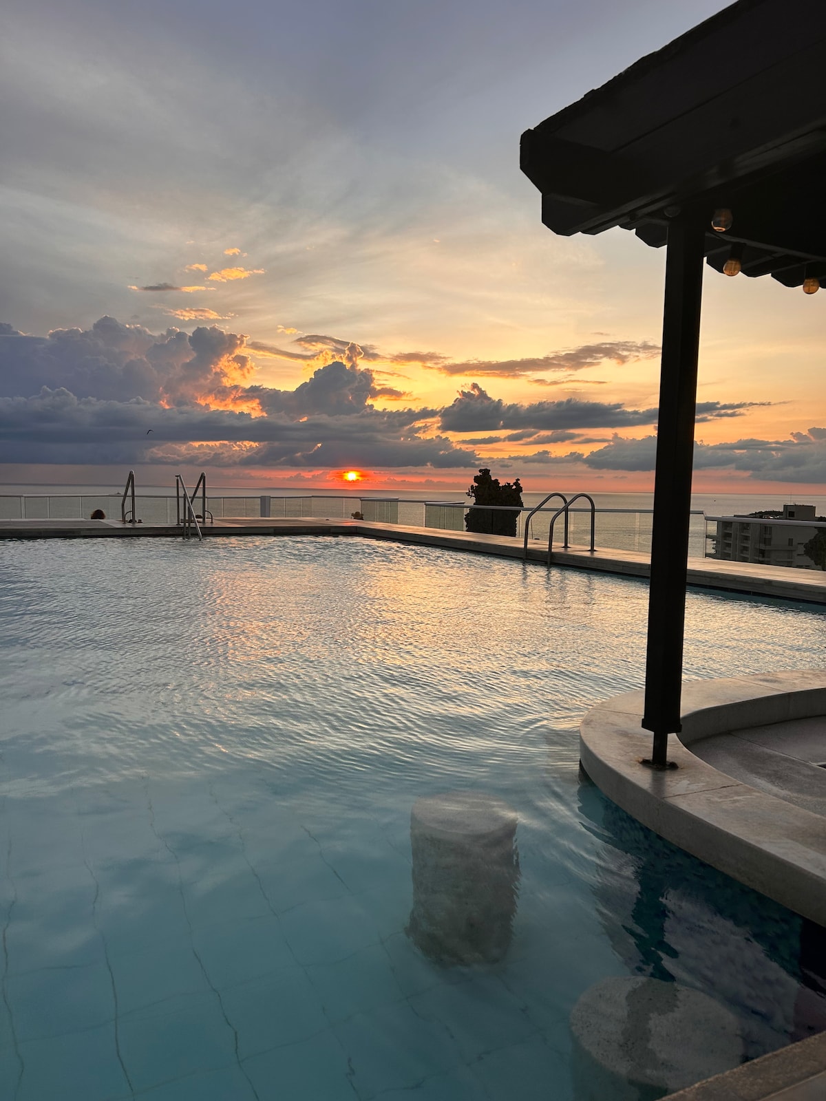 Enjoy dreamy sunsets and sunrises from the comfort of our apartment or while exploring the various amenities available, including: direct beach access, two adult pools, two children’s pools, jacuzzis, sauna, steam room, gym, golf simulator, playground, squash court, coworking space, and a beautiful lakeside lounge area.