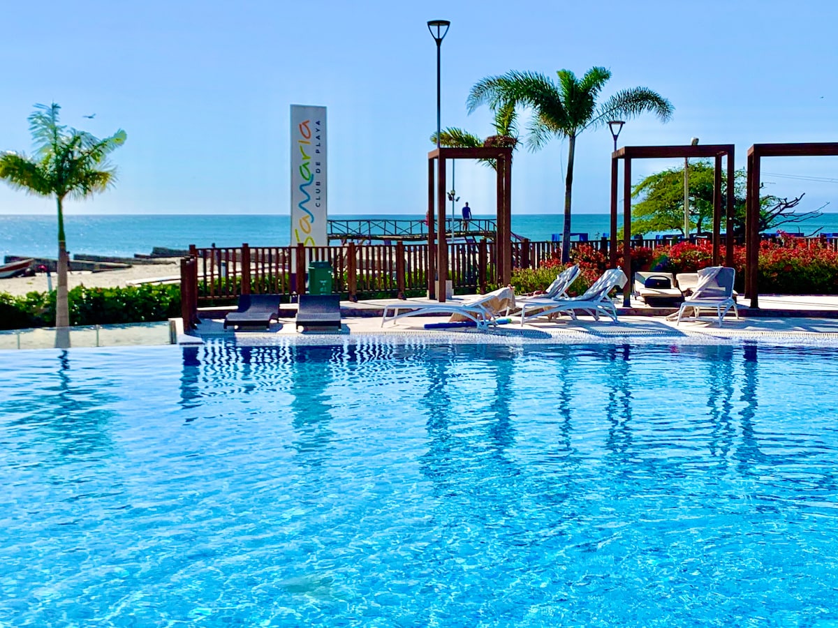 Apartment located in the exclusive Pozos Colorados area in Santa Marta, specifically in the Samaria Club de Playa Condo, one of the most modern in the city. In our apartment, you can enjoy the pleasure of being in front of the sea with unique sunsets, in addition to enjoying a totally modern condo with the best social areas with the privilege of having a semi-private beach. Our guests will be able to enjoy an excellent fully equipped apartment.