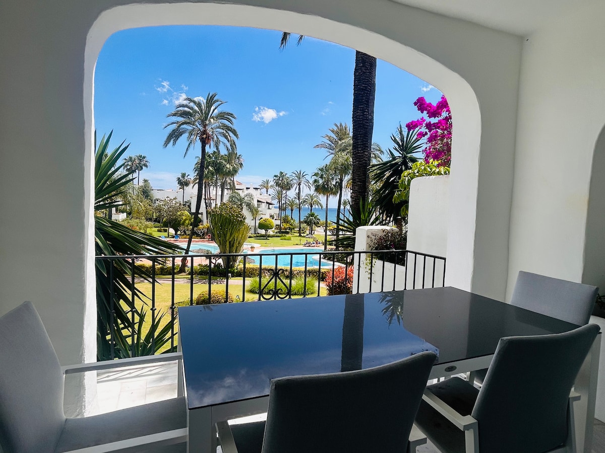 Beautiful refurbished apartment by the beach. Located within the famous Alcazaba Beach complex in Estepona with direct access to the sea. 3 bedrooms, 3 bathrooms. Terrace with sea and park views. 7 Swimming pools, 5 Tennis courts 3 Padel courts, Fitness room, Football pitch... Located 10 minutes' walk from the city centre, many restaurants nearby. The complex is secured 24 hours a day and has a concierge. Ideal holiday location for a family stay