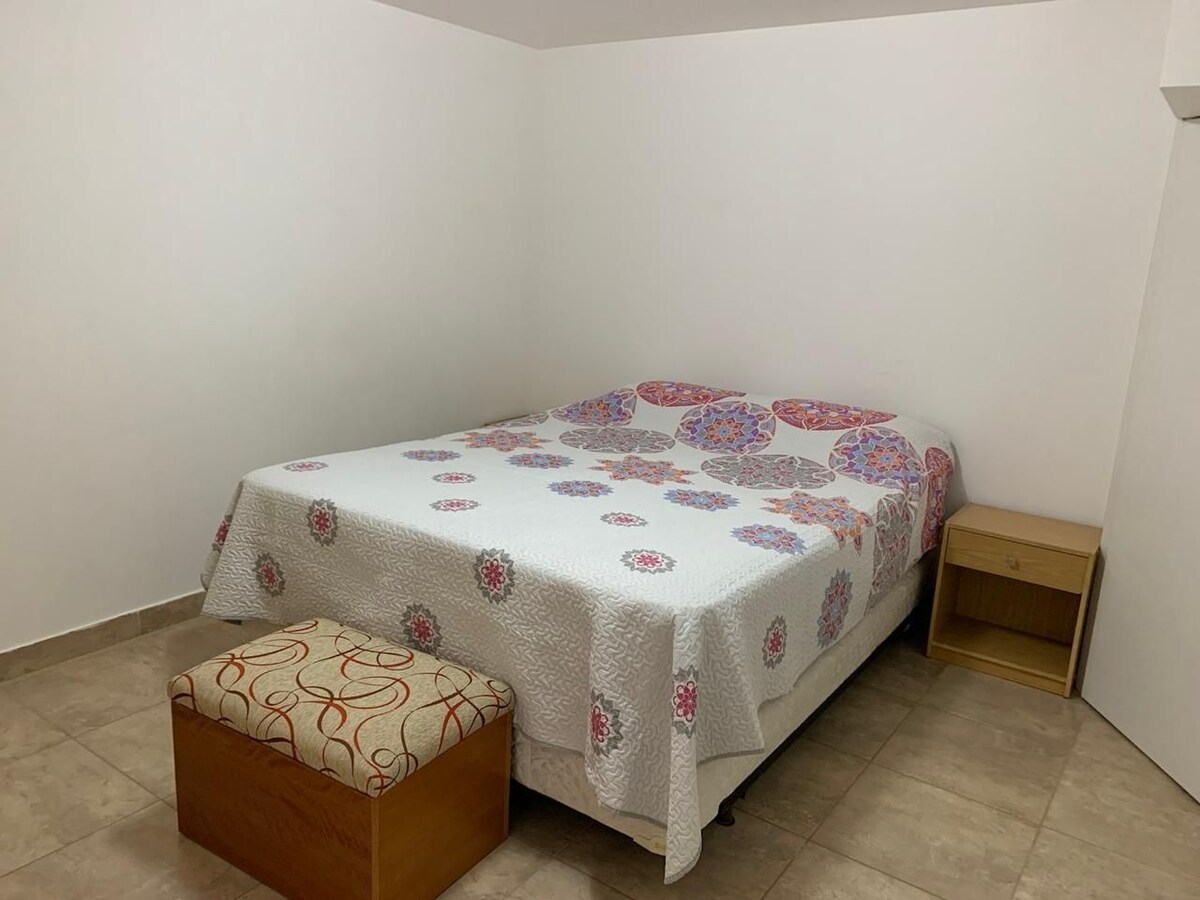 Studio with capacity for up to 3 guests, 2 TWN beds or 1 DBL MAT with the possibility of adding an extra bed for a child up to 10 years old. It is located 1 block from the main avenue of downtown San Martín. Fully-equipped kitchen with coffee maker, toaster, microwave, and basic kitchen utensils. Dishware for up to 3 people and breakfast bar with sidewalks. Hall entrance with placard. Bathroom with shower. Your home away from home Mount Susana view