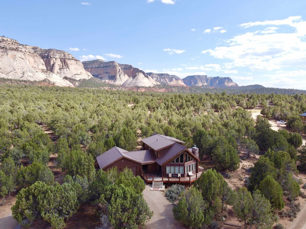 Escape to this panoramic‑view cabin just minutes from Zion National Park, tucked away in the hills near Orderville, Utah. Sugar Knoll Meadows is spacious 6 bedroom/3 bath luxury cabin that can sleep up to 14 people! Perfect for big groups and families and adventurers of all sorts. Cozy up by the grand fireplace inside or gather around the fire pit outside while roasting smores and enjoying the night sky.