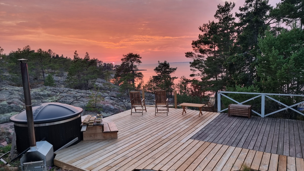 The sea virtually at your feet. Tastefully decorated cottage with double bed and extra bed. Unique secluded location on its own peninsula at the shore, panoramic views and private jetty for sunbathing, swimming and fishing. Fully equipped kitchen. Shower and TC. Furniture and bbq on the jetty. Your stay at the Seaside cottage will be without carbon footprints and in line with a sustainable way of living