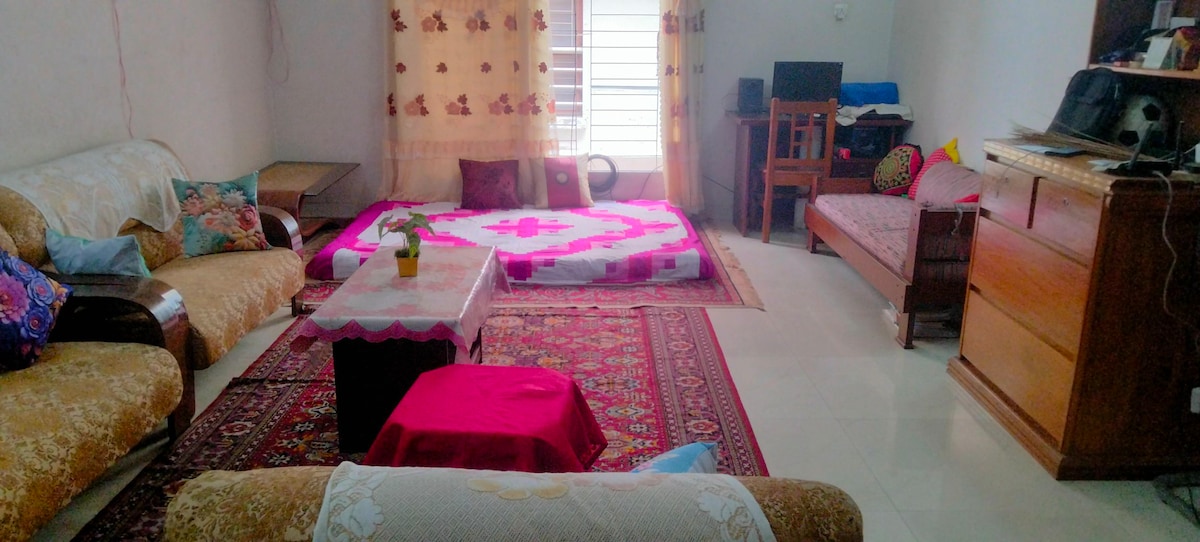 About Our Space : This listing is only For family, if you are single please check our second listing 1100 square feet 2 bedroom and drawing dining, 2 baranda which has a master bedroom with air conditioner and attached bathroom and a queen bedroom air conditioner. It is on the 5th floor and there are lift facilities. Guest Access You are welcome to use the apartment and everything in it as your own- provided you treat it with as much care as you treat your own property.