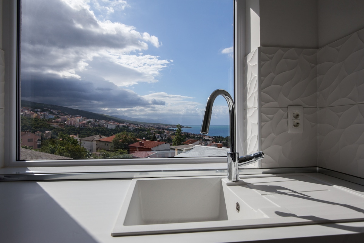 Vacation house Kate will enchant you with its fascinating sea view. You can enjoy the sea view while relaxing on the sun loungers. It is located 250m from the nearest beach. It can accommodate 5-6 people. The holiday home has a dining room, fully equipped kitchen, two bathrooms, two bedrooms and two terraces. There is also an outdoor grill. It is fully air-conditioned, each room has its own air conditioning and heating. Pets are welcome.