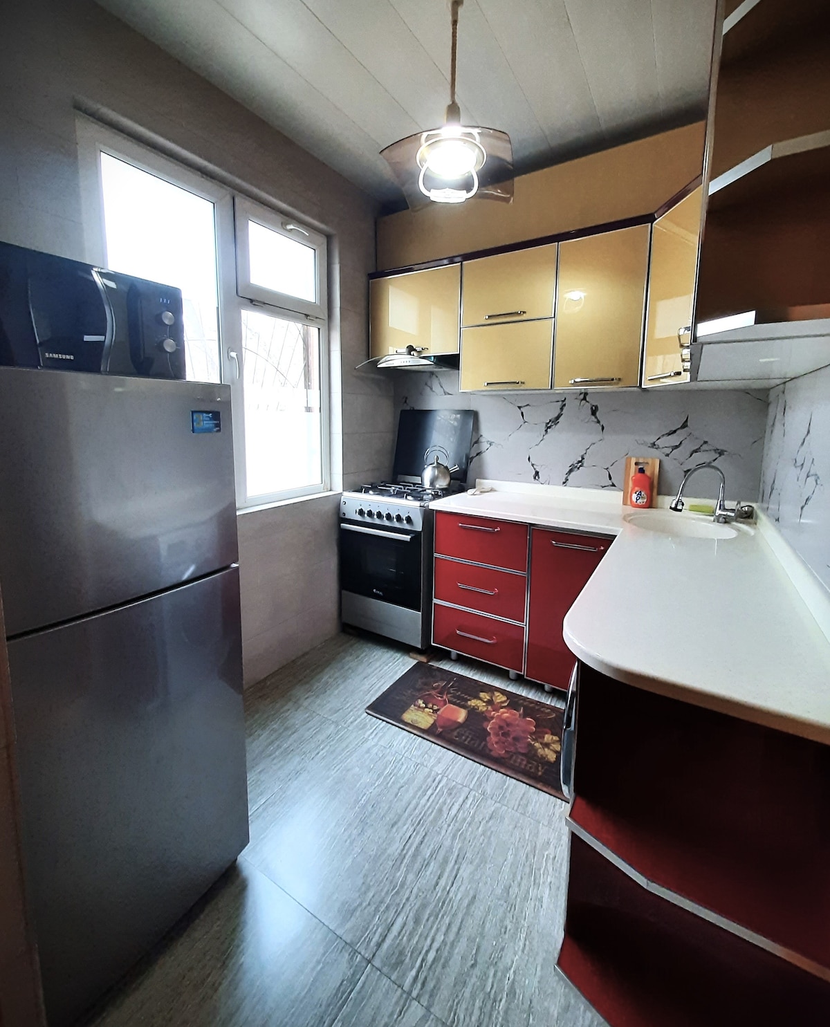 Centrally located, fully furnished and brand new apartment within walking distance (15 min/1.4 km) to the Old City in Bukhara. Get the entire place to yourself to cook, do laundry and rest in-between your travels. Enjoy this spacious and modern apartment. 1 Bedroom, 1 Bath with a washing machine. Spacious living room with a convertible sofa bed for 2 extra guests, kitchen with refrigerator, oven and other basic appliances.