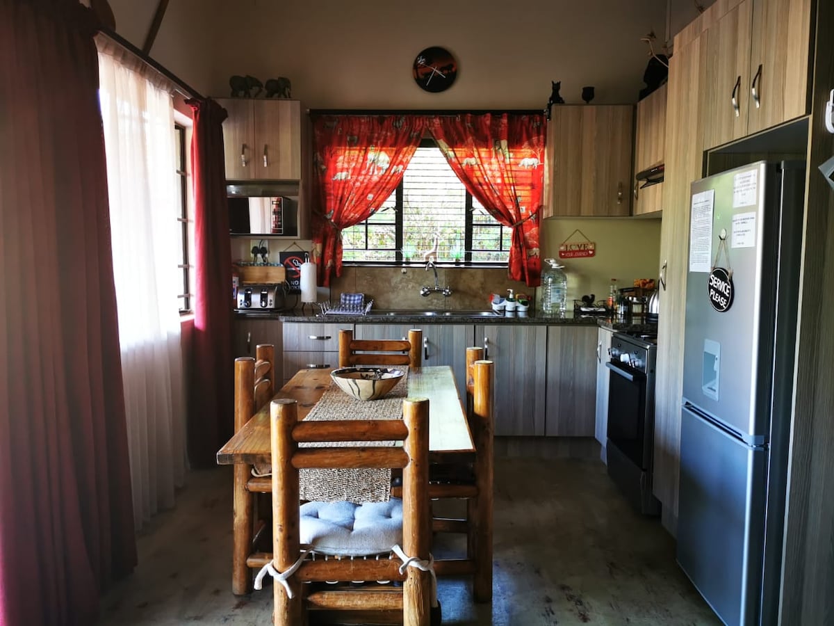 This cozy self-catering cottage, only 6k from Pilanesberg, is ideal for a small family. It has a beautiful view overlooking the swimming pool and the Pilanesberg mountains. The unit has a comfortable king size bed and a large bunk bed. It is equipped with emergency lights, a gas stove and a gas geyser to make your stay more comfortable during load shedding hours. A covered BBQ/braai area outside the cottage is yours to enjoy. Covered and secure parking is provided right next to the cottage.
