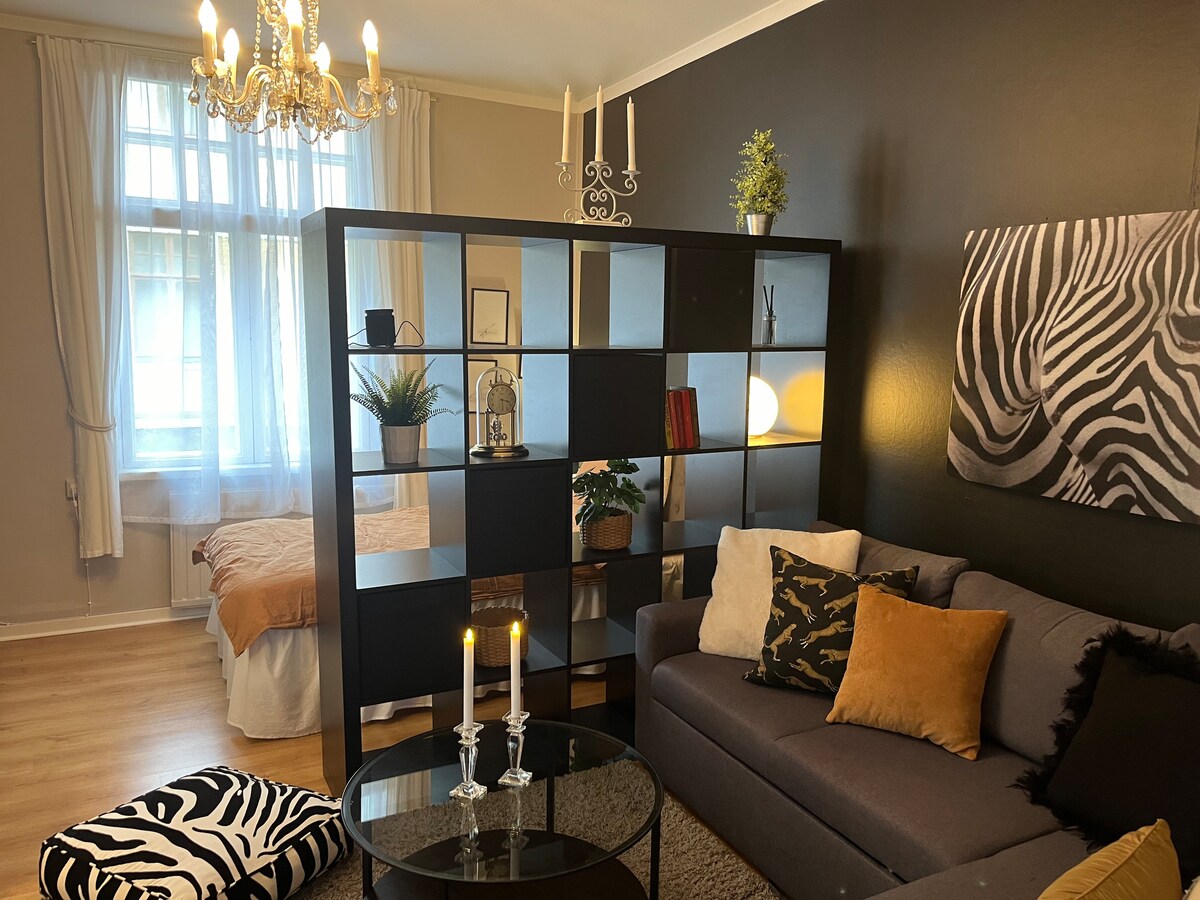 Nauti tyylikkäästä majoittumiskokemuksesta tässä keskeisellä, mutta rauhallisella paikalla sijaitsevassa kohteessa. 160-vuotias asunto on päivitetty vastaamaan nykyajan viihtyisään asumiseen tarvittavia vaatimuksia. Keittiöstä löytyy perustarvikkeet ruuanlaittoon, ja uudet kodinkoneet. Vaikka huoneisto sijaitsee keskustassa, on sen pihapiiri idyllisen maalaisromanttinen aittarakennuksineen ja pihakeinuineen. Käytössäsi on nopea WiFi-yhteys. -lähin kauppa 180m -rautatieasema 850m -tori 450m