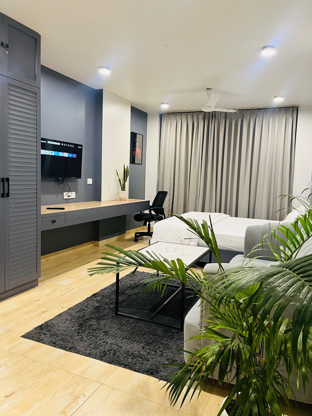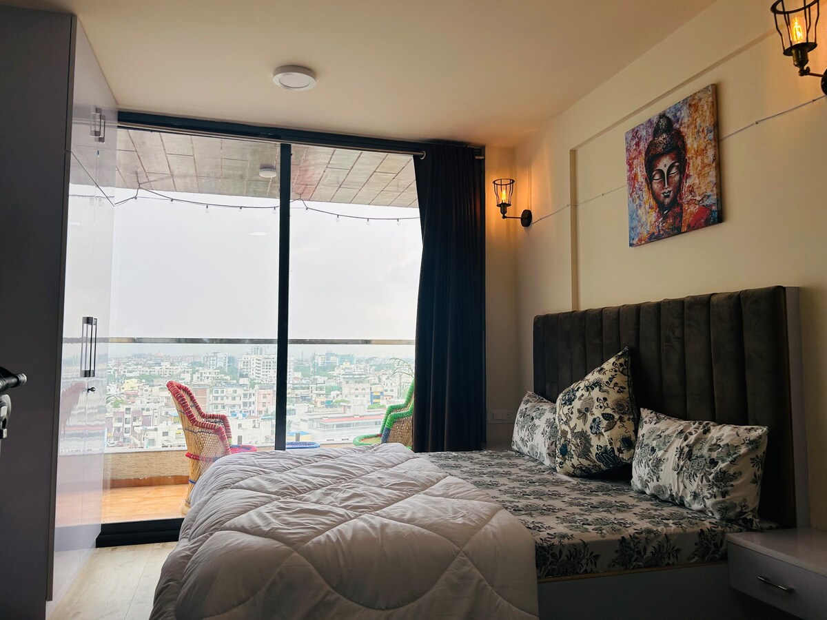 Centrally Located Apartment with railway station just 4 mins away? - you get it Fast Wifi along with 42inch TV and OTTs for entertainment? -you get it Microwave, Refrigerator, RO, Induction for fooding needs? - you get it Access to gym & infinity pool? - you get it Amazing Interiors with comfortable bed? - you get it! This aesthetically designed apartment leaves nothing behind when it comes to comfort, luxury and amenities. Need we say more?