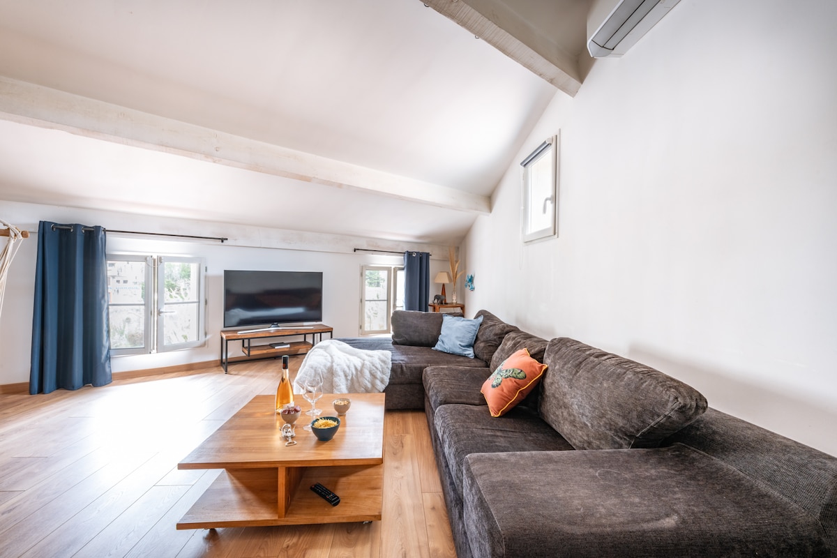 Kick back and relax in this calm, stylish space located in the heart of Vaison-la-Romaine The air-conditioned apartment is completely refurbished A mezzanine bed and a sofa bed can accommodate 2-4 people. The kitchen is equipped with: Induction cooktop Dishwasher Microwave Kettle Nespresso TV with internet box channels. Flexible check-in & checkout times. Free parking is available within walking distance Cleaning at the occupant's expense or extra charge