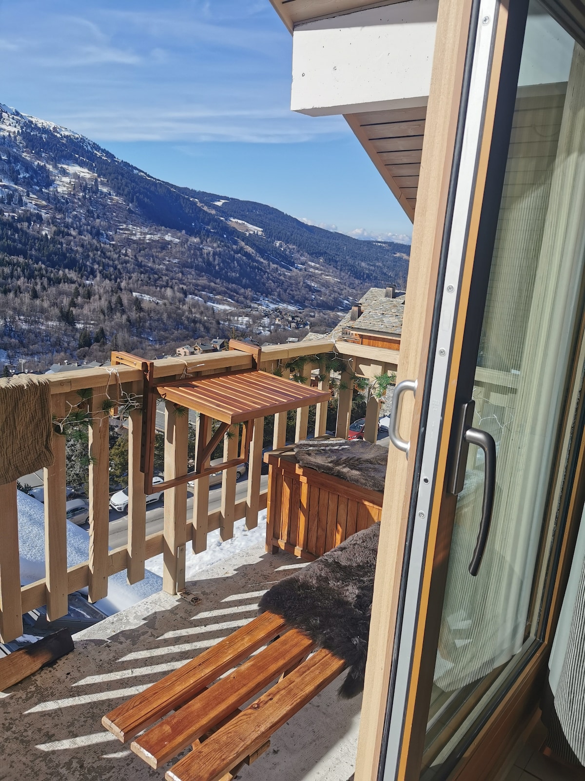 Méribel family accommodation close to amenities. Access to slopes 7 min walk and shuttle 2 min, fully renovated. Small haven of peace perched on the 3rd floor without elevator access. Beautiful unobstructed mountain views. Peaceful residence. The apartment has a mezzanine with 2 beds not recommended for children under 8, the stairs are steep... There is also a small bedroom with a double bed of 160 with lots of storage. Well-equipped kitchen. Sitting area with fireplace and dining area
