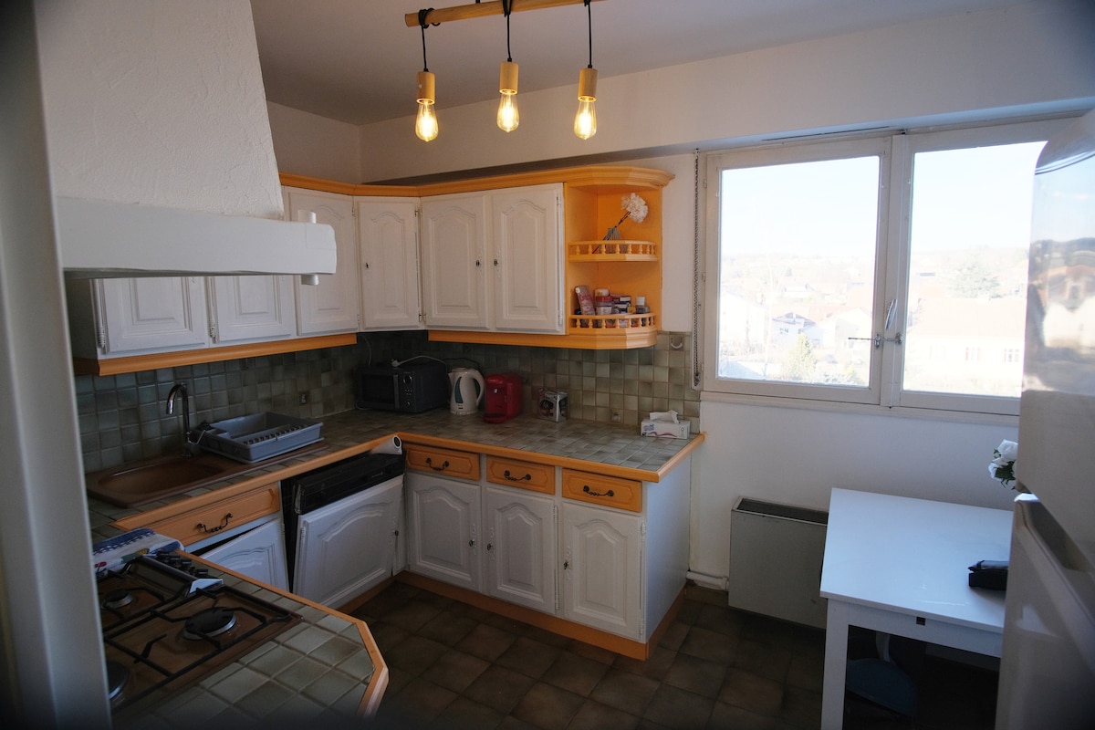 85 m2 apartment, Pontarlier city center in a quiet area between the Doubs and Chevalier Park It is located on the 3rd floor of a small quiet building. It benefits from good light in a rustic style and is properly equipped for a pleasant stay. Thanks to numerous public parking spots, it will be very easy for you to park your vehicle. The train station is 600 m away: 10-min walk) You can also find many shops minutes from the apartment