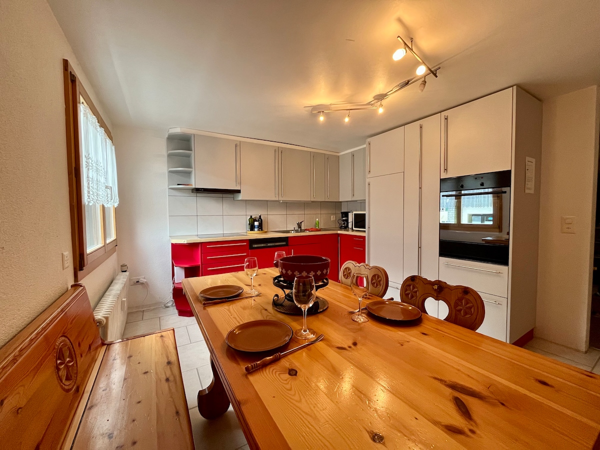 STUNNING MOUNTAIN VIEW 🍀 PRIVATE: - 2 bedrooms with STUNNING MOUNTAIN VIEW, each with a 180 cm BoxSpring King-Seize bed - 160 cm sofa bed in living room with STUNNING MOUNTAIN VIEW - Fully equipped kitchen, fondue 🫕 , spices🌯, dishwasher, oven, microwave, etc. - Spacious, modern bathroom with 3 shower modes - 65" TV, HIGH-SPEEDinternet 🛜 SHARED : - Beautiful shaded terrace, playground - Infrared Sauna - Books and board games 📚🧩 Ideal for FAMILIES and FRIENDS ! 🌷👙🫧🩳🩱🚠🧗♀️🌞🍄⛷️☃️