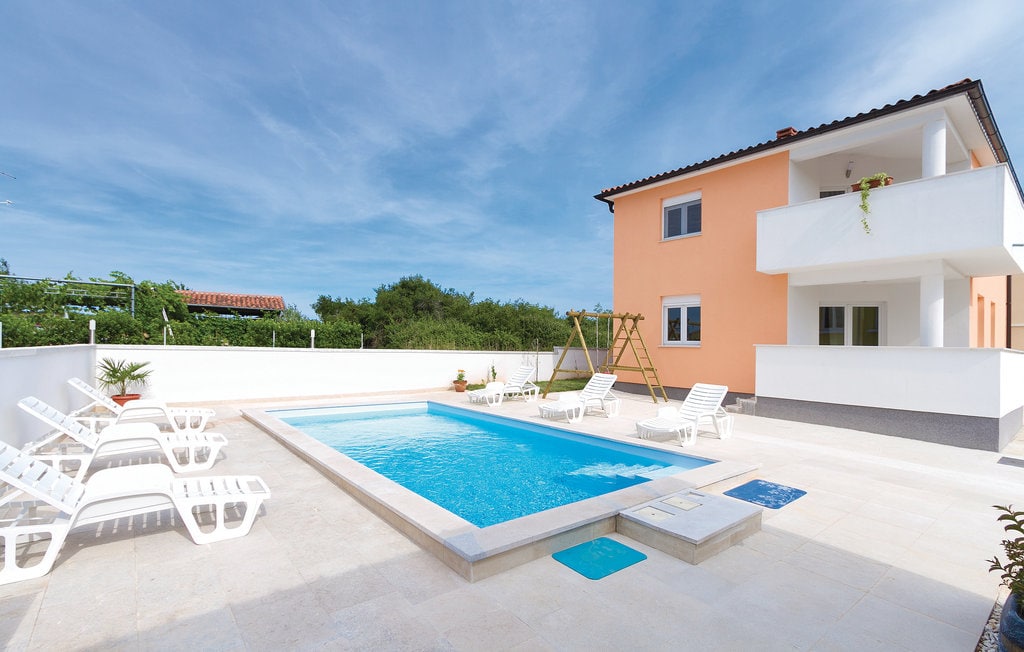 Two bedroom apartment with swimming pool and jacuzzi, 5 minutes walk to the beach. It is located in Valbandon, 2km from Fažana and 6km from Pula. Apartment are situated on the ground floor. The exterior is dominated by a swimming pool and a garden ideal for a your relax holiday. Take a tour of the city of Pula, rich in summer events, various cultural and entertainment activities, and taste local specialties of the exquisite gastronomic offer in Fažana while enjoying the sea view.
