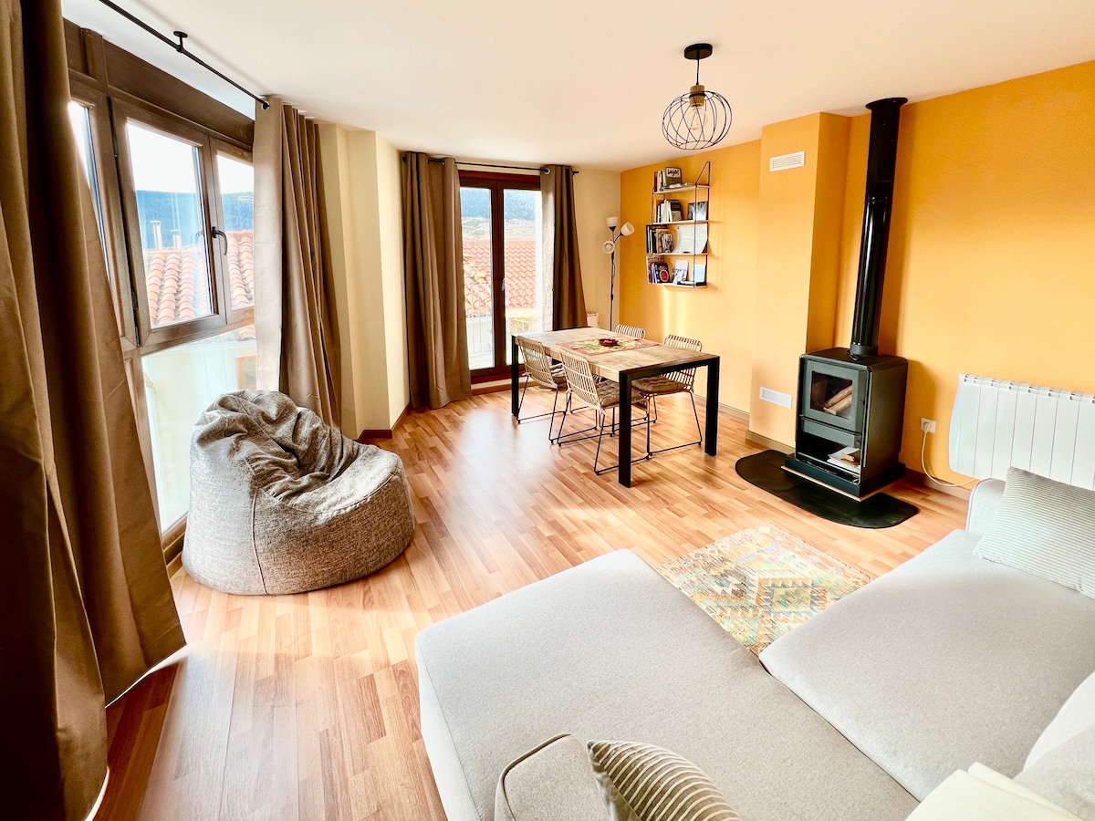 Brand-new and cozy one-bedroom apartment at 5 min drive from the Valdelinares Ski resort. A parking space within the building is included in the price as well as a dedicated ski locker. The bedroom features a comfortable double bed and the glass-enclosed living room offers stunning mountain views, a double sofa bed and a warm fireplace. A balcony with a dining table allows to enjoy meals al fresco. Valdelinares, the highest village in Spain is waiting for you!