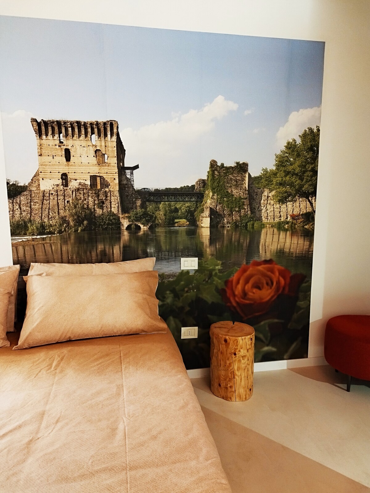 Una Rosa sul Mincio is a charming apartment in the heart of Valeggio sul Mincio. In the immediate vicinity you will find, just 400 meters away, the Sigurtà Garden Park, within walking distance. The property, with its unique design, will make your vacation unforgettable. A strategic point for easily reaching Lake Garda, the cities of Verona and Mantua and Gardaland Amusement Park. A few meters away you will find the Mantua-Peschiera Cycle-Pedestrian path that runs along the banks of the Mincio River.