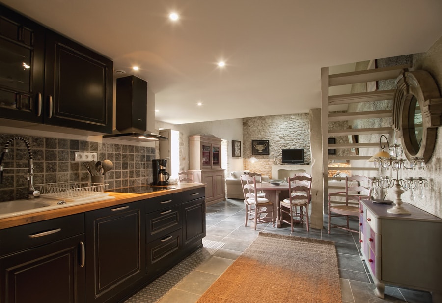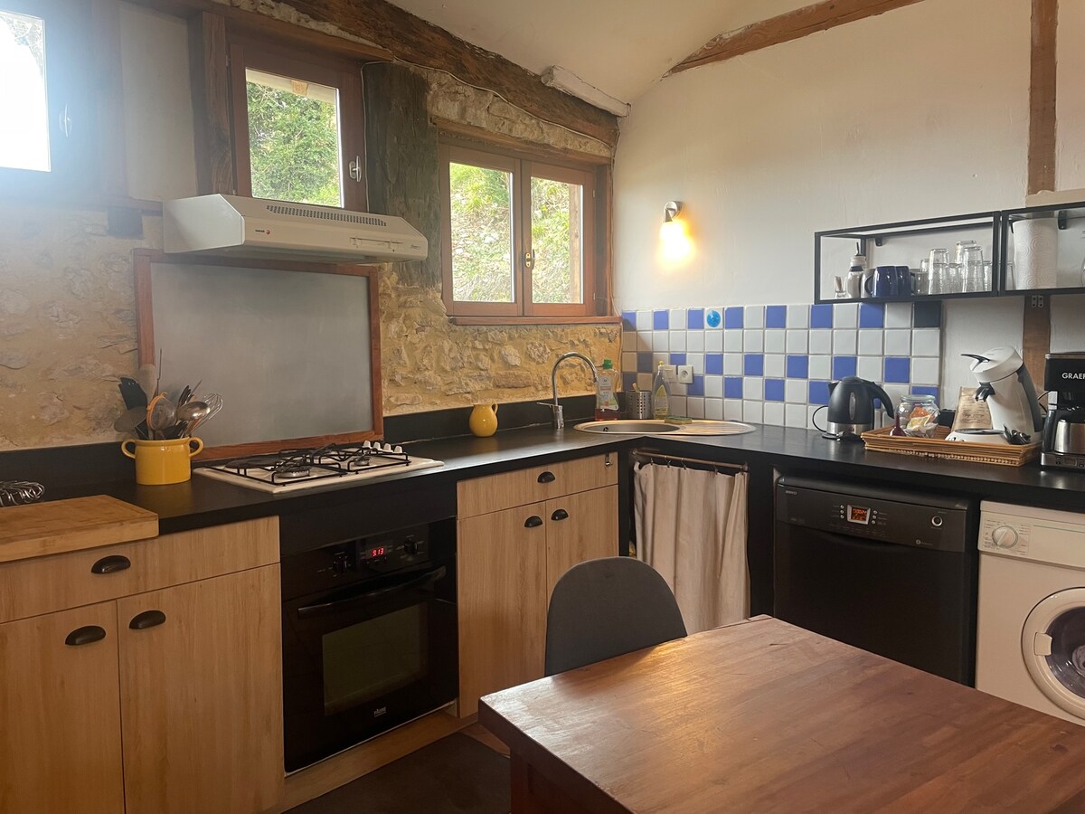 Large cosy chalet with a view of the fields, perfect for a couple. The chalet is seperate from the rest of the house. Situated on the ground floor, a private terrace, a large 20m2 lounge/dining area with a sofa, a dining table and a small-fitted kitchen, a WC with a shower. Upstairs a 10m2 mezzanine contains two single beds (80x190), which can be joined to make a double . Beds are made on arrival. Towels provided. Equipment: gas hob, fridge, microwave, coffee machine, kettle, hair dryer.