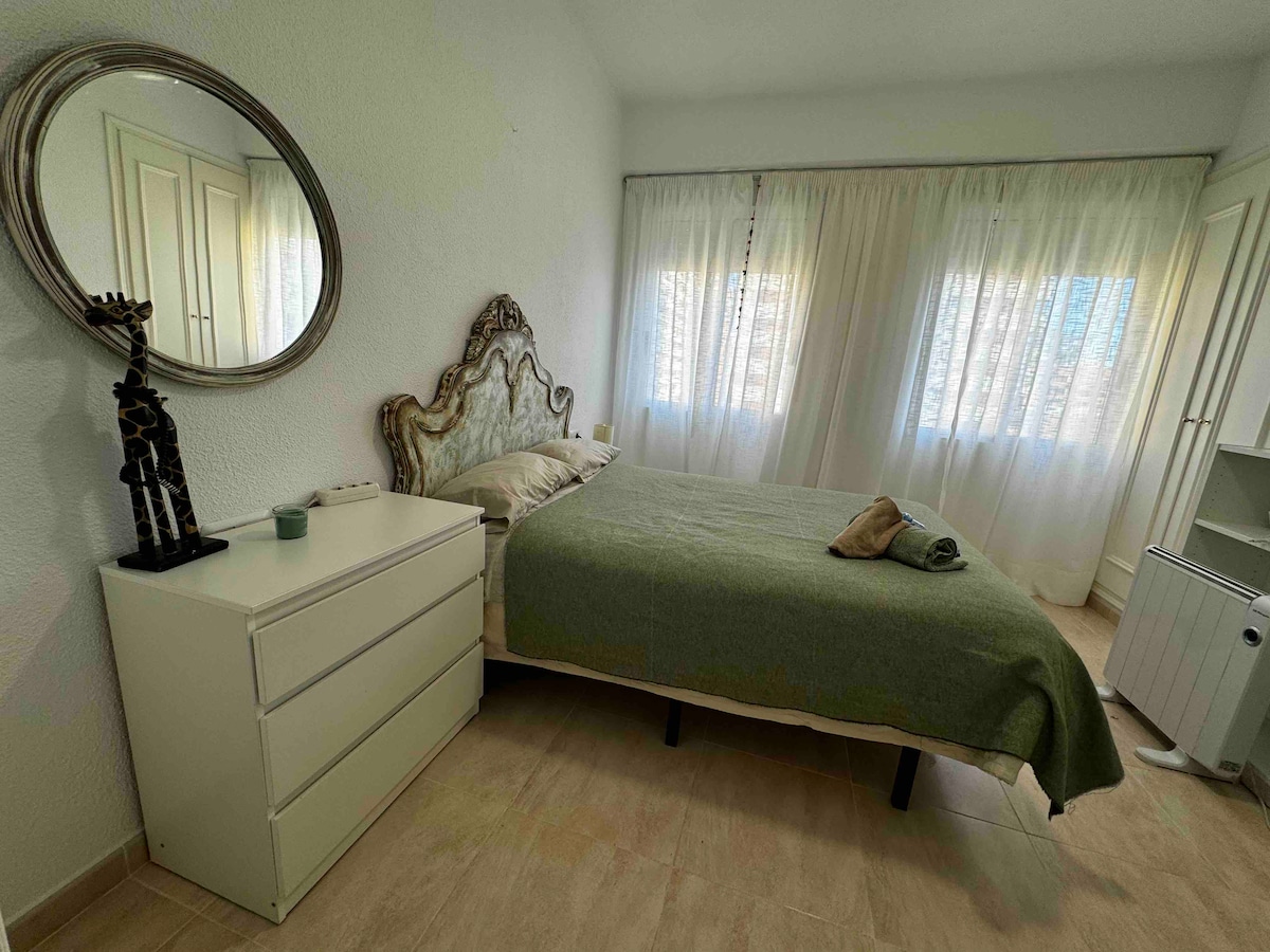 The apartment is brand new and very well equipped, the room has lots of daylight and the bathroom is private. The apartment has 3 bedrooms in total, a kitchen, dining room and two bathrooms. It is located in the university area, a two-minute walk from the Turia River Park, a 15-minute walk to the center (historical city) and very close to the university area. There is a bus stop and Arangon metro station just below the apartment.