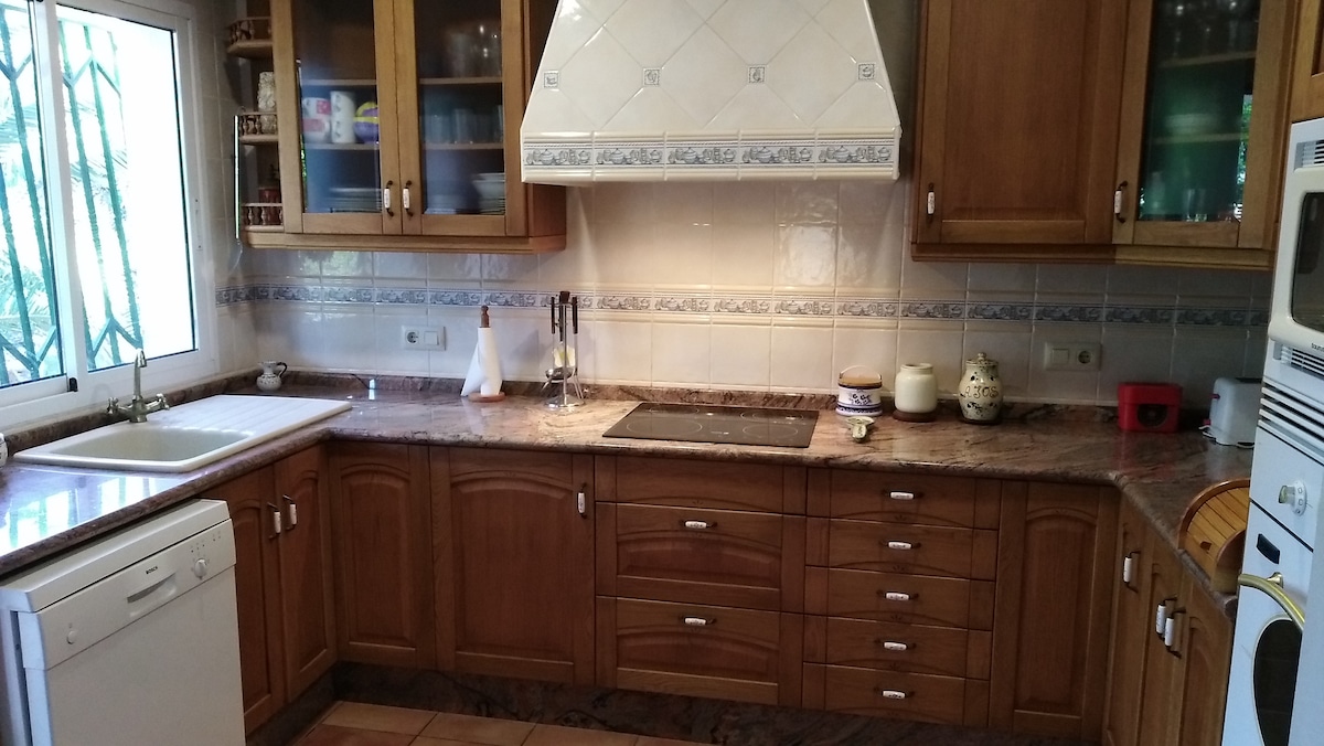 Chalet in an excellent location, 800m from the village and 900m from the shopping center, a house full of very careful details and all the extras, since it was not made for this purpose, it is best to see the photos, all the rooms are very spacious, as a detail the fridge is always left with purchases made, excellent coffee maker, all large and small appliances and 2 55-inch TVs, bathroom and kitchen only 1 year old, on the plot there is another small house that depending on the dates may be occupied, private pool