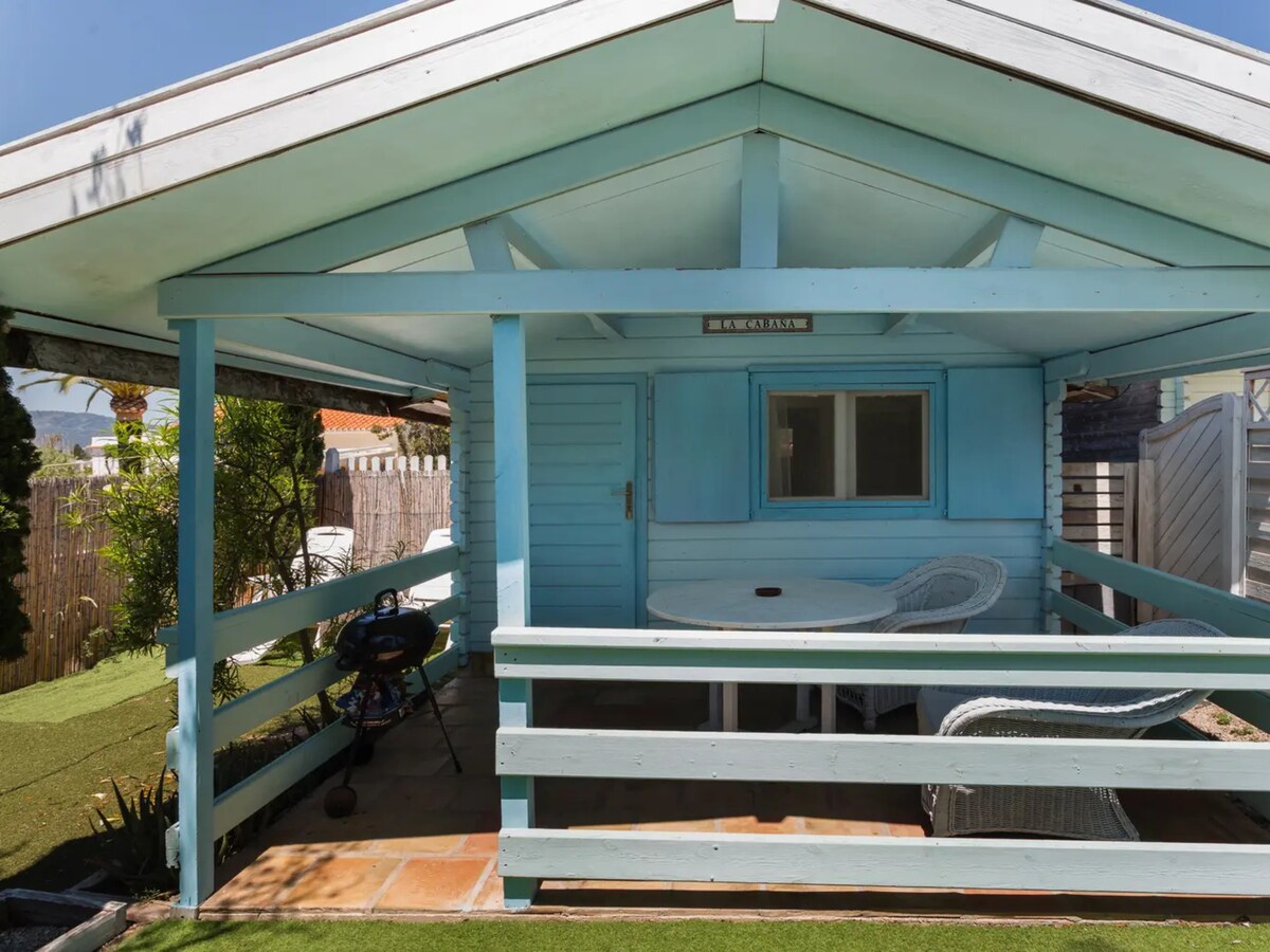 A haven of peace. Wooden cottage with a king size bed of 180, outdoor kitchen, dry WC, and shower, all for exclusive use. In the middle of the forest. 12000m2 paradise. I offer you the experience of restoring and immersing yourself in the middle of nature with all the amenities and maximum privacy. In the middle of the mountain, and a forest of carob trees and pines. And the sea in the background. You will leave here as new@. Come enjoy the silence and nature. Playas 20min. More info and photos in @cabanasdelbarro