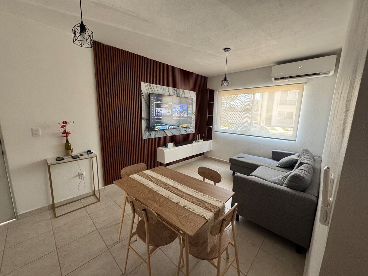 An intimate and quiet space in a privileged and discreet location. Your stay will be wonderful and peaceful. An intimate and quiet apartment in the heart of the famous Fracc. Reforma. Two comfortable bedrooms (one double and one single) with a bathroom in the master bedroom. Living room, dining room, and kitchen. The apartment is less than a 10-minute walk from the sea. The subdivision has the best restaurants, cafes, and entertainment venues in the city.