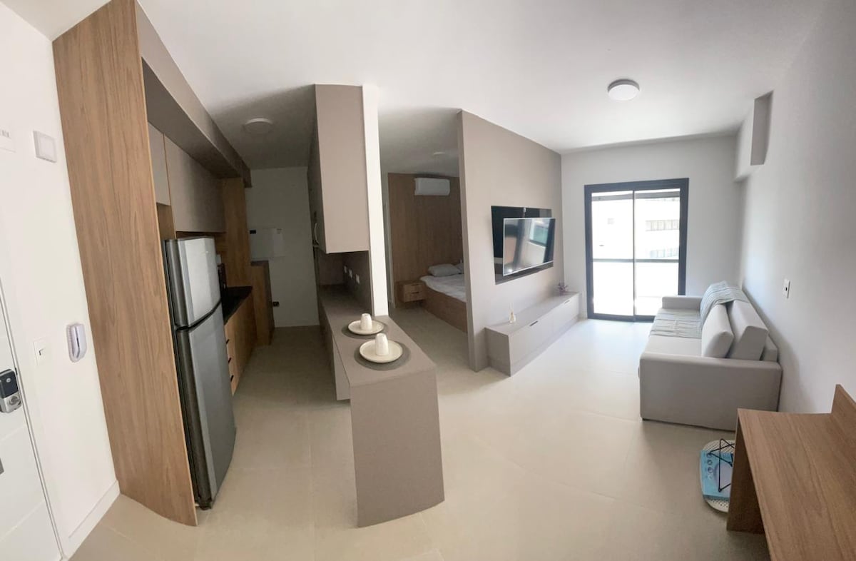 Enjoy an experience of comfort and practicality! We have prepared a modern apartment, furnished with great affection for your stay. You'll feel at home! Cozy atmosphere with: Full kitchen, sunny balcony, double bed with closet, Smart TV, Wi-Fi, air-conditioning and new, soft bed/bath linens! And more: in addition to a charming studio and leisure in the condominium, you will be in a privileged location, close to Bosque dos Jequitibás, Av. Norte-Sul and Cambuí, with great restaurants and cafes.