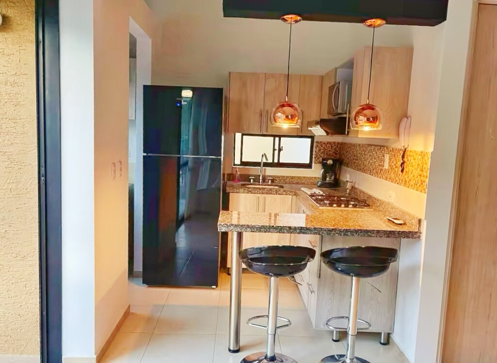 Sensational and elegant apartment-hotel surrounded by nature; fully equipped for a pleasant stay. You can enjoy a new, impeccable place with a fresh and cozy design; 24-hour surveillance. 5 minutes from the airport and 20 minutes from Parque del Café. Resort-style amenities: 3 pools, slide, children's games, jacuzzi, BBQ, washing machine. Strategically located to get to know the entire coffee region and cities such as Pereira (1h30m) and Cali (2h30m).