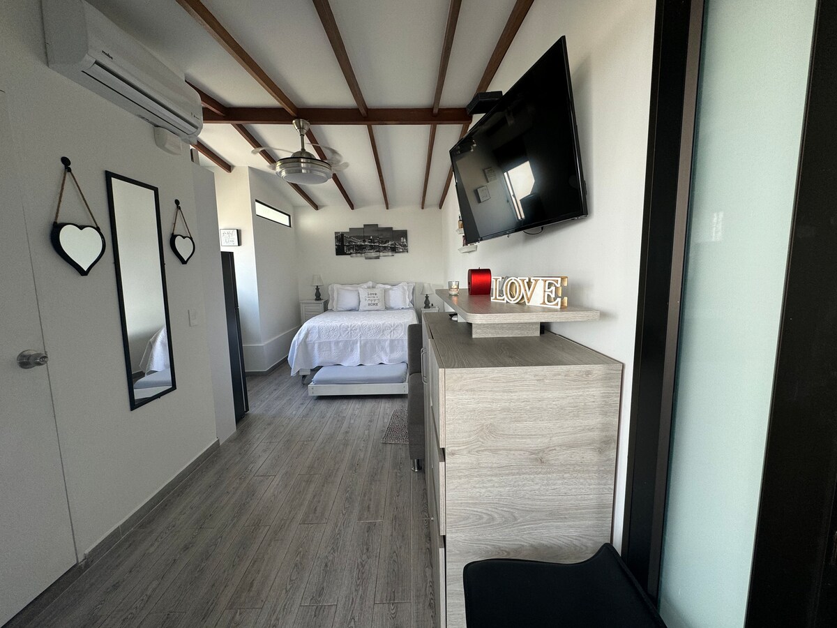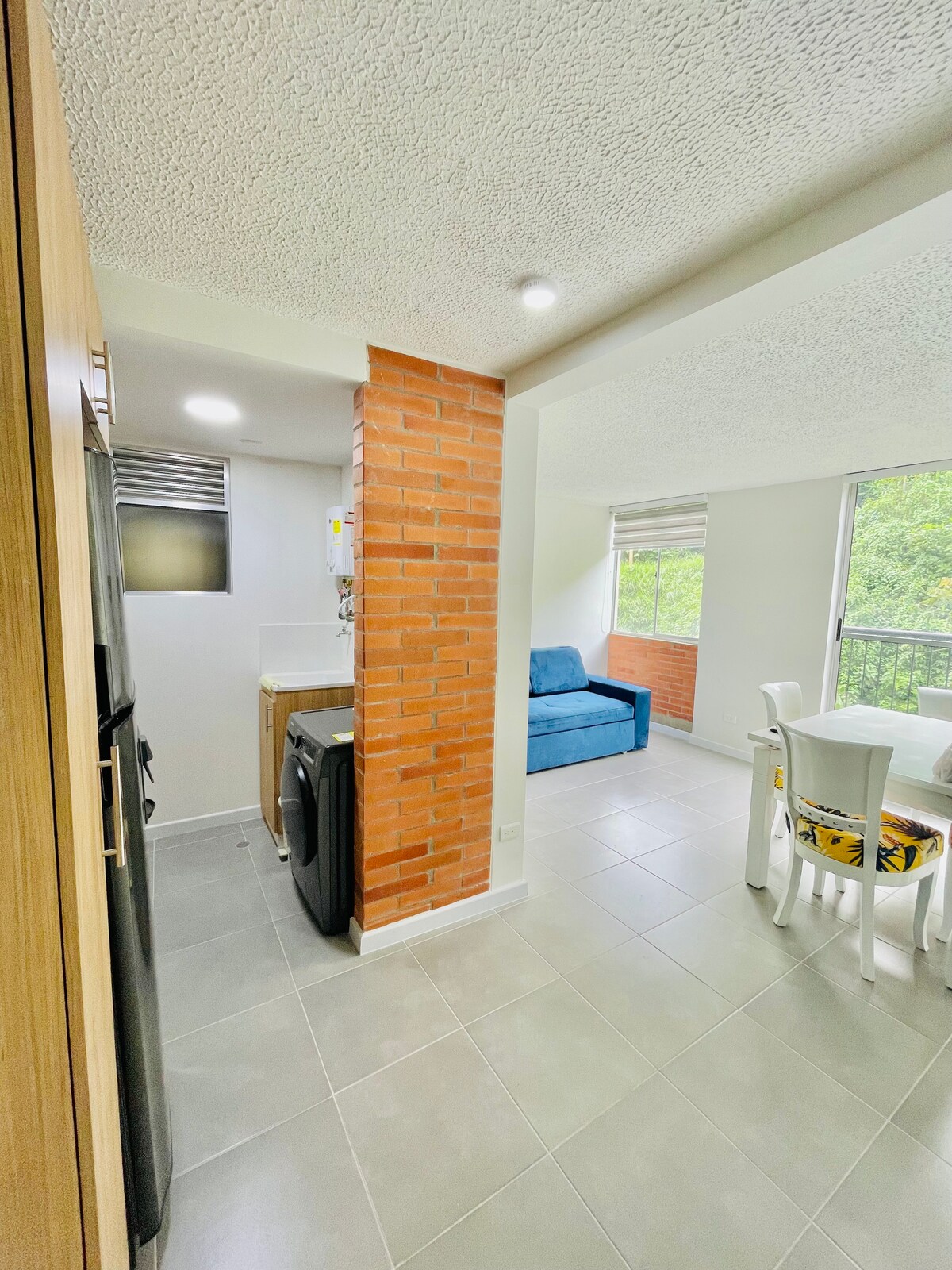 Modern and cozy loft in the heart of Granada, the pink area of Cali. Walking distance to restaurants, cafes, bars and shops. Ideal for those who want to experience the city. It has a double bed, an equipped kitchen, split air conditioning, Wi-Fi, a desk and access to a shared patio with a washer and dryer. IMPORTANT: DUE TO ITS LOCATION IN THE PINK AREA, MUSIC OR ENVIRONMENTAL NOISE MAY BE HEARD, ESPECIALLY DURING WEEKENDS.