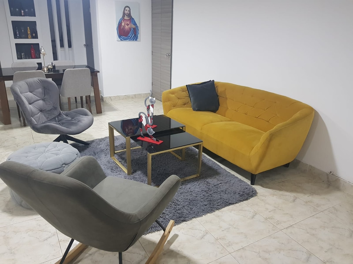 A nice, decorated, and cozy apartment with a well-equipped kitchen and private parking. You'll be able to enjoy your stay in the coffee region comfortably and quietly while visiting the region's top attractions. Parque del Café is just 7 minutes away. Panaca is about 30 minutes away and Parque de la Familia, a water park with soccer fields, is just 2 minutes away.