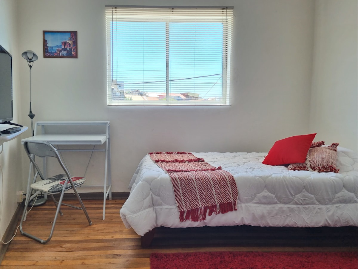 Comfortable, bright and cozy apartment located in the heart of the heritage Cerro Alegre with a privileged view of the bay. Close to traditional promenades, museums, art galleries, restaurants, and bars. You can walk up, take the well-known Reina Victoria or El Peral elevator, or drive up and park on the same street as the apartment. Our home combines the benefits of being located on one of the most recognized streets of the hill and the design of spaces for relaxation and inspiration.