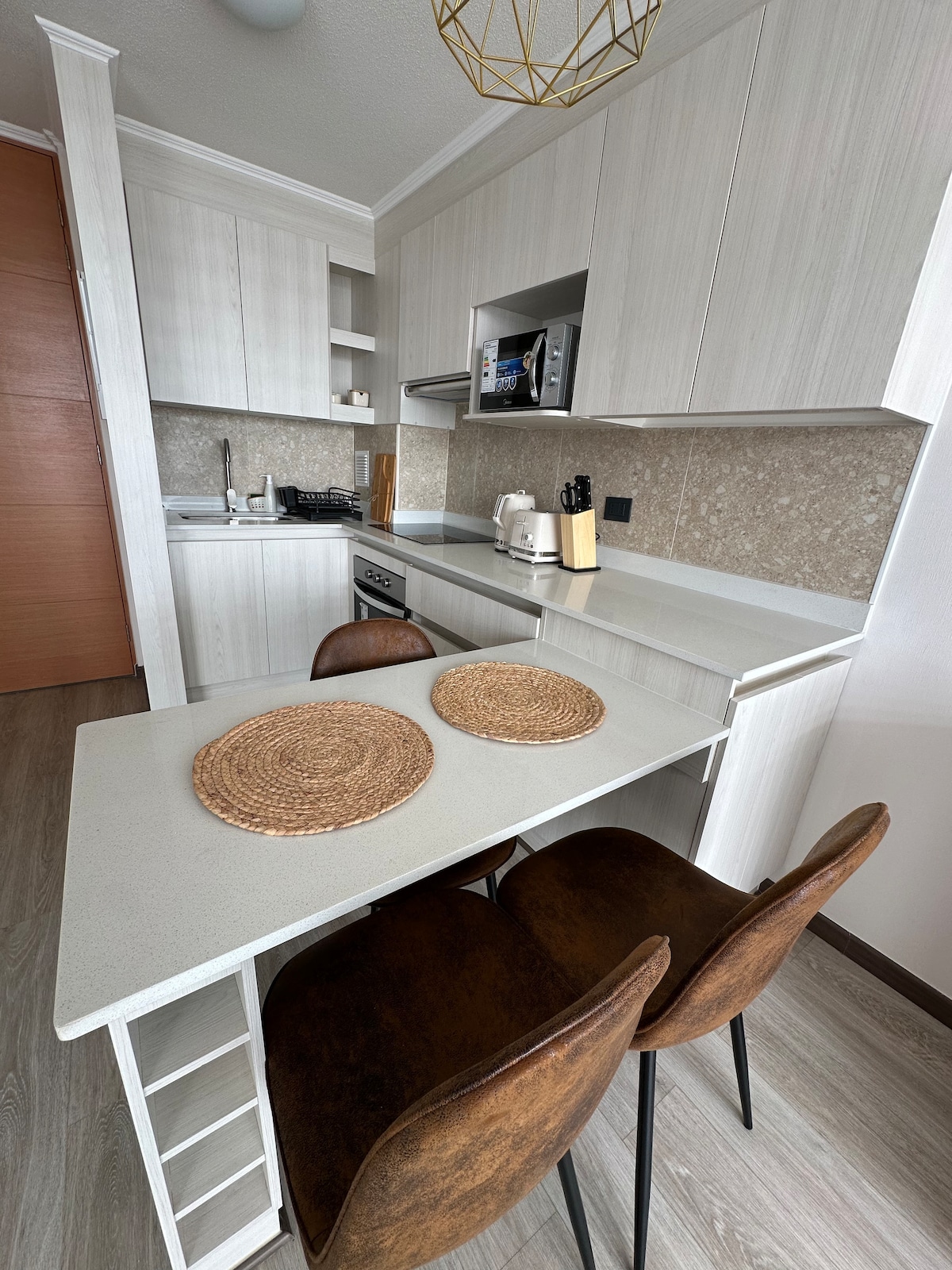 Experience Valparaíso like never before Relax in a modern and cozy space, created for you to find the calm you need in the heart of the city. Enjoy Buenos Aires' history, its hills full of life and the ocean view. High-speed WiFi (500 Mbps), ideal for teleworking. Panoramic terrace overlooking the hill and ocean. Private parking. Condominium with 24/7 security. Excellent connectivity to move between Valparaíso, Viña del Mar and surroundings.