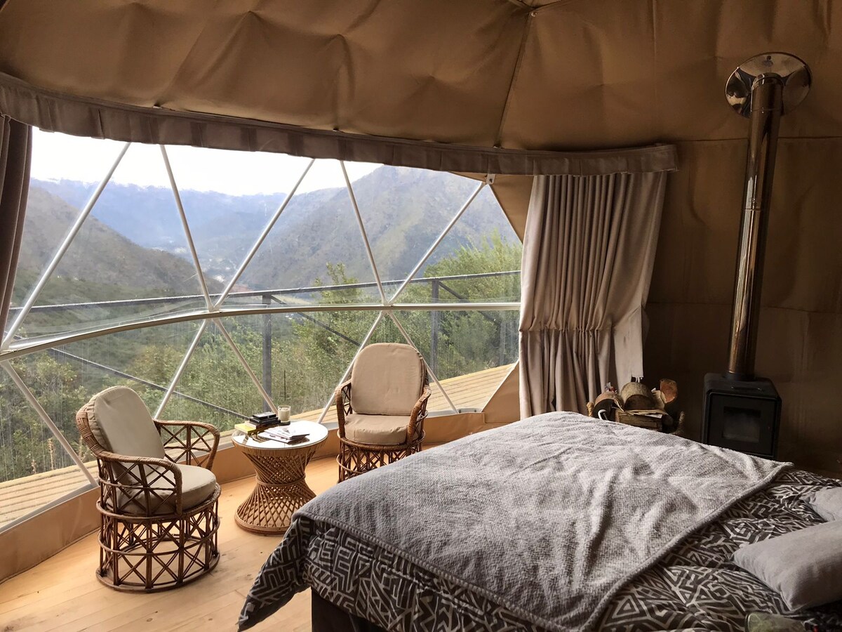 Quimsa Glamping Domo is the ideal space to reconnect with nature. Located between the mountains of the Maipo Valley and surrounded by native sclerophyllous forest, this Eco-sustainable Dome offers an unparalleled view and a Glamping experience that blends the connection with the natural environment but with the comforts of a comfortable place. Ideal for resting and relaxing, contemplating the native flora and fauna and charging yourself with the energy of the Andes Mountains.