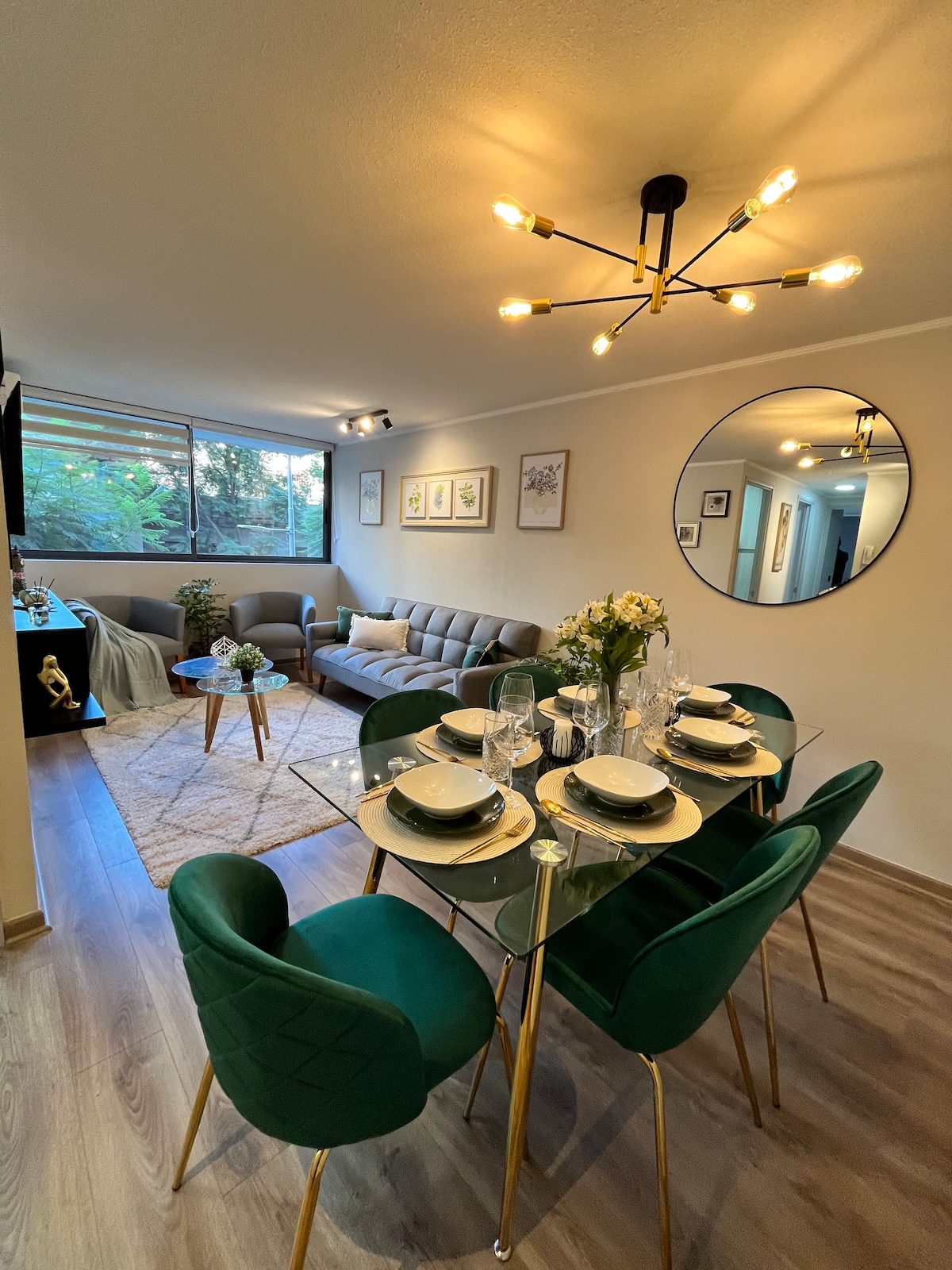 The flat is designed to make your stay comfortable, enjoyable and safe. Our location is one of the most prime in the Golf sector and close to the Costanera Center shopping mall and MUT. We are just a short walk from the Tobalaba metro station. Internet wifi 🛜 500 Megas and TV Cable Vtr Full with movie, music and NETFLIX channels. Pay-per-use laundry and tumble-drying room: 1,700 pesos per load. You use coins or you can pay with the Pronto Matic App A parking lot in the building underground. We offer invoices for businesses.