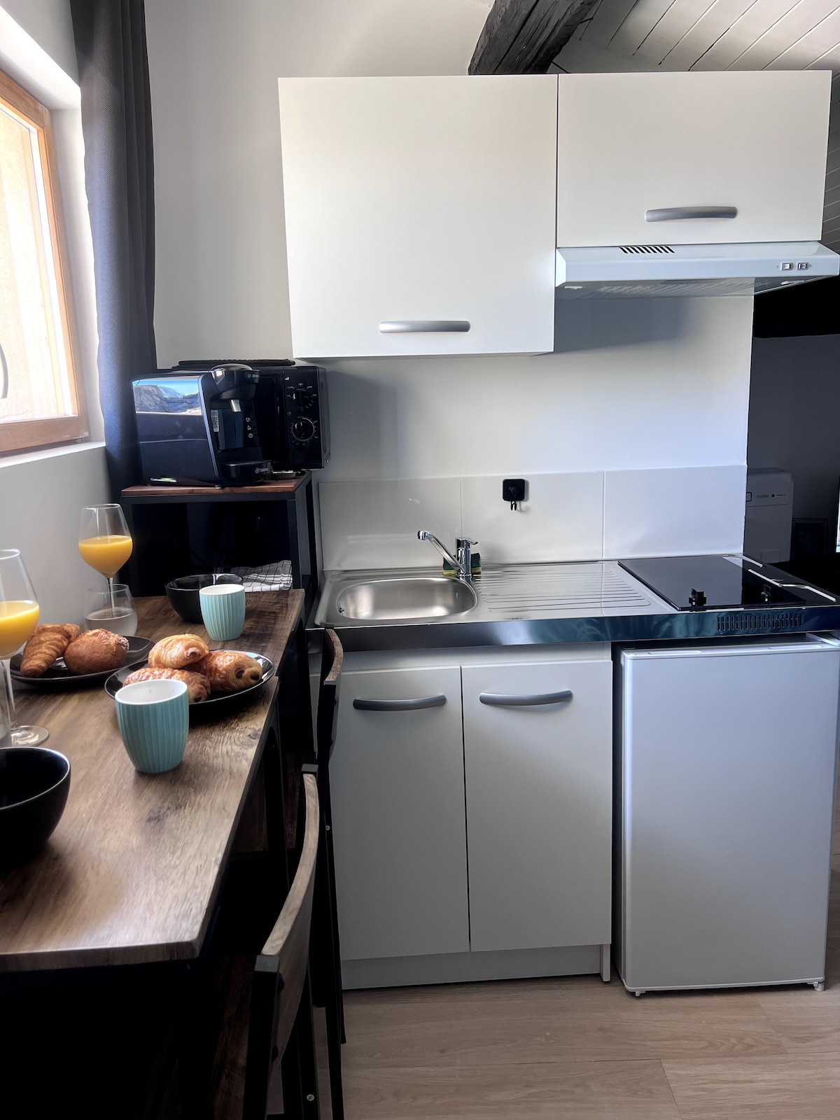 Two rooms with bedroom, living room, kitchen, private bathroom and separate entrance in a boutique hotel with cactus gardens. Upon arrival, the premises are clean, the bed is made (160 x 200 cm). You have 3 towels per person. Two cactus gardens are shared with guests. This furnished tourist accommodation is rated 3 stars by the OTC Pays de Grignan Tourist Office – Enclave des Papes. Quiet location, 2-minute walk to the center of the village.