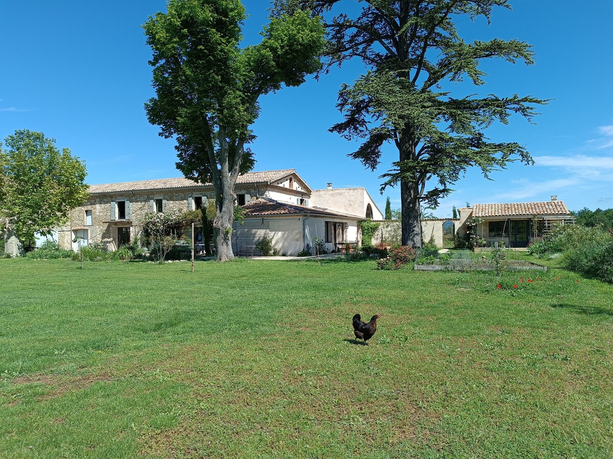 25 mins from Avignon at the foot of Mont-Ventoux. Annie and Alain will receive you in their house WHERE THEY LIVE. 1 bedroom on the ground floor with private bathroom and garden access, ventilation, fridge 64 euro / night, possibility of an extra bed / 26 e / night. 3 bedrooms upstairs with shared bathroom, separate wc, kichnette 54 euros / room. Baby cot free. Garage for motorbike or bicycle PLEASE CONSULT us before any reservation for age of children, Decreasing price from 2 nights.it is b&b.