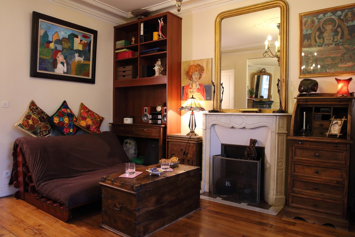 Beautiful 6 rooms apartment with wooden floors, mouldings, fireplaces and a big living-dining room with a Steinway grand piano. Very well situated in a uplifting and very practical to visit district of Paris. Just a few steps from the metro station!