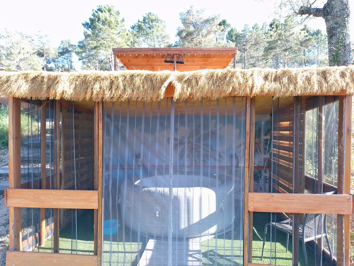 Le Domaine de Céres est un oasis de calme et de sérénité au coeur d'une forêt bienveillante et énergisante. Venez retrouver vos aspirations profondes en profitant de l'air pur, de la tranquilité et de la beauté de la nature tout en ayant le confort nécessaire pour un séjour inoubliable. Le jacuzzi est ouvert de mai à septembre, il se privatise sur place au tarif de 10 euros les trente minutes