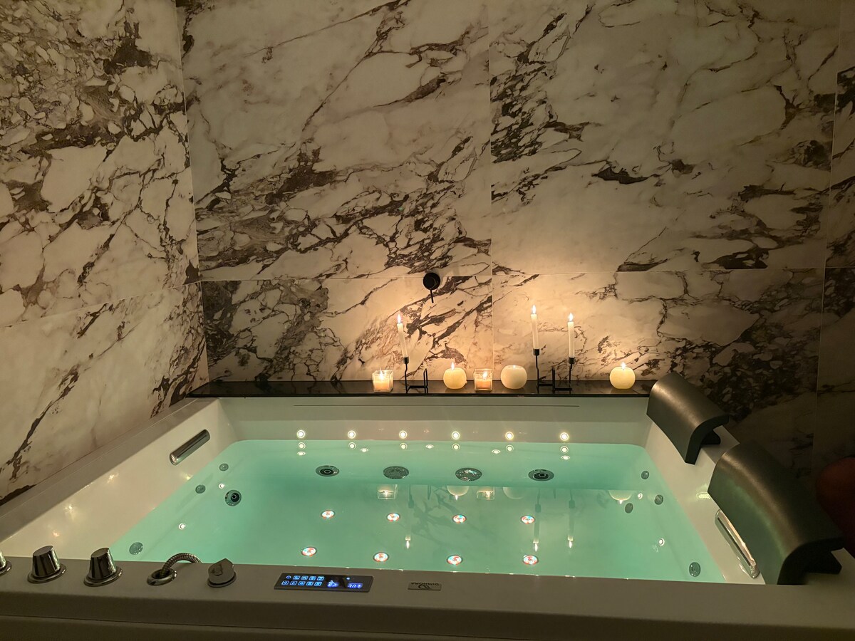 Welcome to the Sparkling Suite! Our luxurious suite offers a spacious bedroom and a bathroom equipped with a magnificent hot tub, perfect for total relaxation. With elegant furnishings and impeccable attention to detail, our accommodation is ideal for those seeking comfort and refinement. Book now and enjoy an unforgettable experience in the heart of the country.