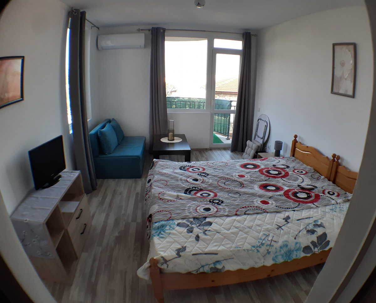 Newly renovated and newly furnished studios in Byala, just 500 meters from the beach. Supermarket and restaurants around the corner. All rooms have their own shower room, air conditioning, balcony with sea view. Breakfast included Shuttle service possible. Extra bed for baby, children on request. Everything you want to explore is right outside the door of this place.