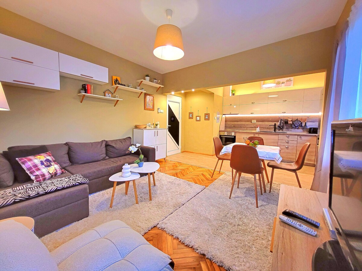 Welcome to my cozy and newly furnished apartment one minute away from the central tourist alley leading to the Beach, the Sea Garden, restaurants, bars and nightclubs. 5 minute walk to the Beach. It has everything you could possibly need. Friendly to pets. -Two bedrooms each with a double bed. -Living room with a sofa that stretches and can become a third double bed. -One bathroom; -A balcony. Check-in after 14:00 Check out before 11:00