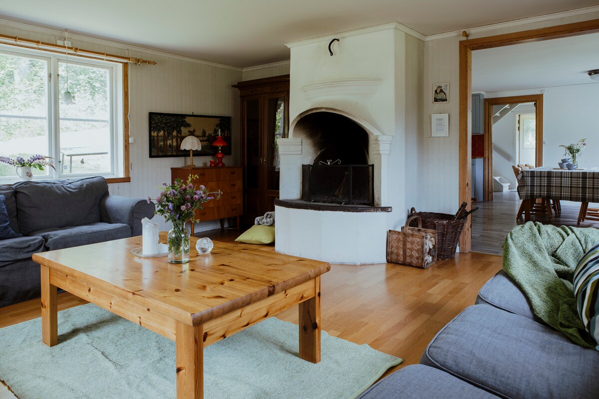 A private and well-kept house in Småland, close to nature and furnished for a comfortable stay. Sauna and breakfast with homemade bread are avilable as an add-on. You'll find a very spacious kitchen, a king size bed upstairs- and everything else you need for a relaxing stay. Hikingtrails right outside the door and amazing Store Mosse National Park not far away. To find this house again, add it to your wishlist❣️