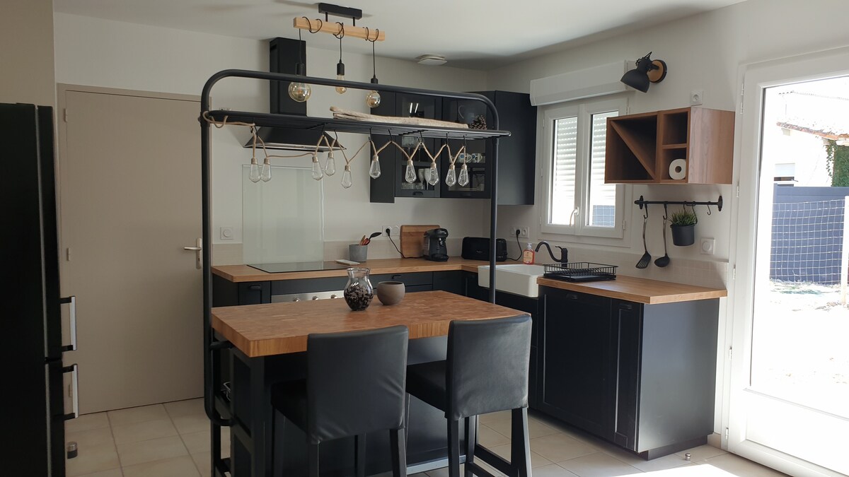 In Royan (5 minutes from the beach and the city center by car) I offer this pretty 110 m2 single-story house, completely tastefully renovated in winter 2022-23, with its beautiful 400 m2 wooded garden not overlooked. The house is spacious, bright and warm. It feels good there. It includes a large living-dining room and open kitchen, 2 bedrooms, 2 bathrooms and 2 toilets, one of which is separate. This is a great place to have a great stay in our beautiful city of Royan.