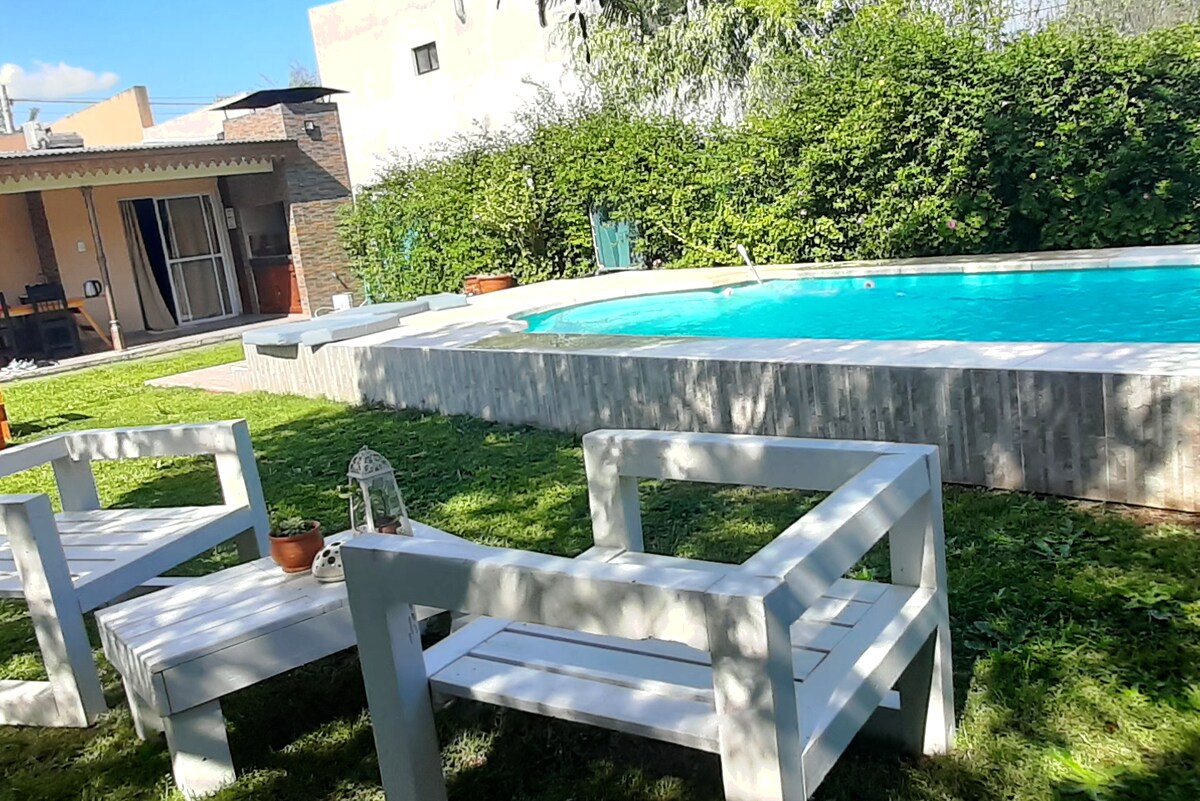 🏡 Bright house with pool and park, in the heart of 25 de Mayo 🌿 Enjoy your stay in a super comfortable house with a beautiful park with pool, grill and spaces equipped with everything you need for a pleasant stay. Visitors are not allowed, and the use of the pool and common spaces is exclusively for registered or authorised guests. Biuti, a sweet and sociable kitten, lives on the property. It is quiet, independent and has its automatic feeder located in the kitchen.