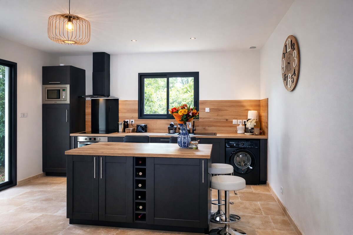Contemporary architect-designed villa nestled in a peaceful location in the heart of the Aix-en-Provence countryside, at the foot of the majestic Sainte-Victoire, a source of inspiration for Cézanne, in Saint-Marc-Jaumegarde. Just 5 minutes from Aix-en-Provence and 45 minutes from the beaches, it offers an ideal setting combining nature and culture. Heated swimming pool available from May to October. The villa comfortably accommodates up to 4 people and offers a wide range of facilities for babies.